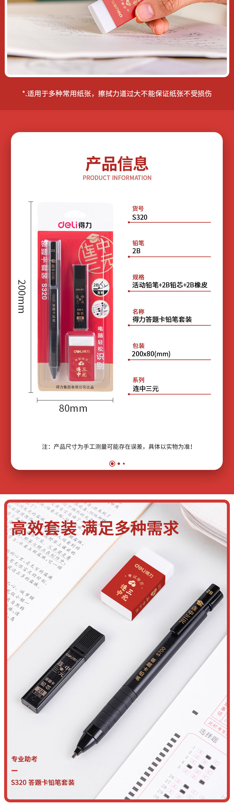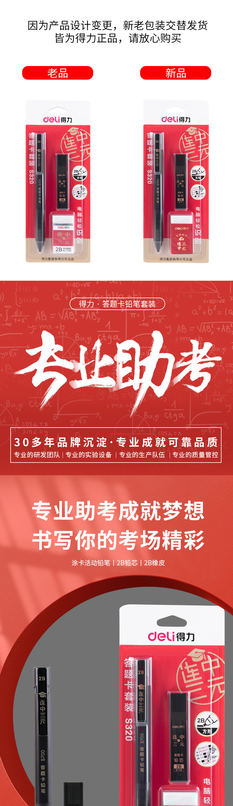 델리 s320 컴퓨터 테스트 펜 2B 카드 코팅 자동 연필 학생 시험 특수 고무 리드 세트