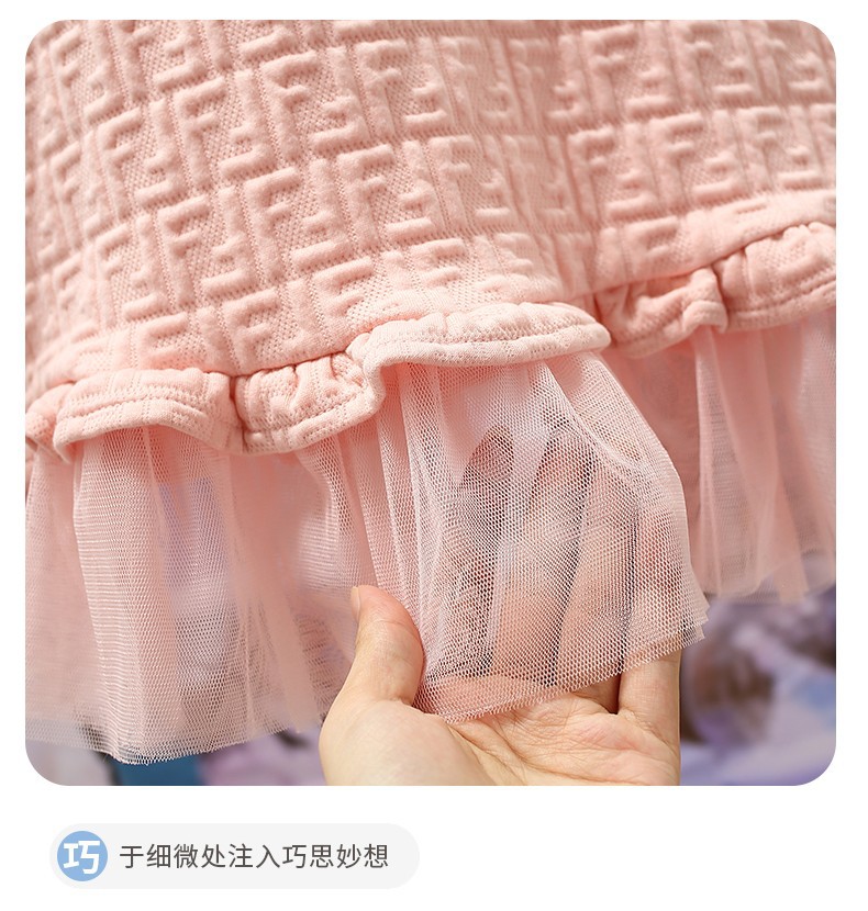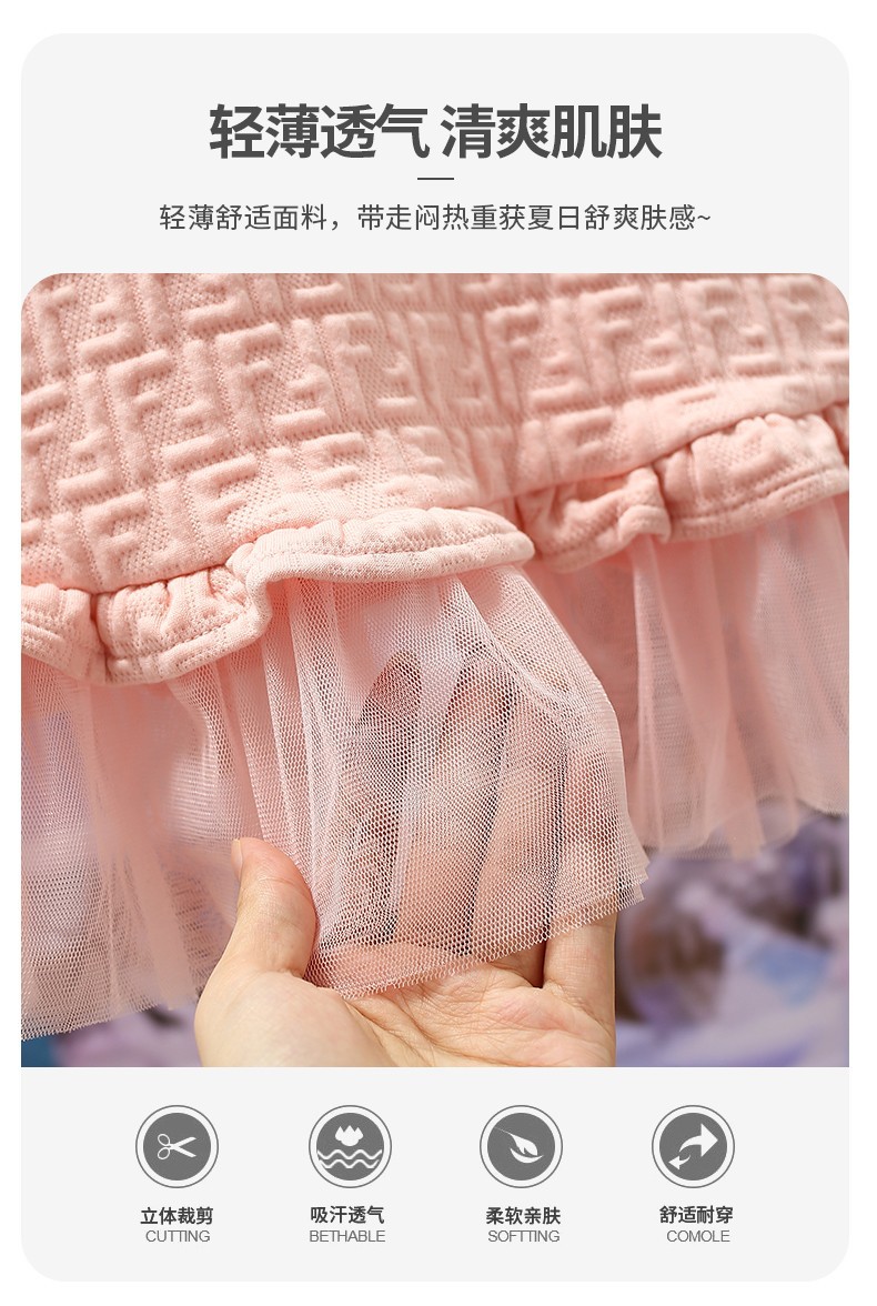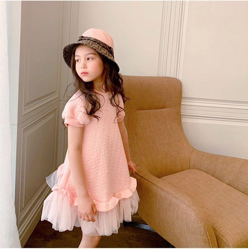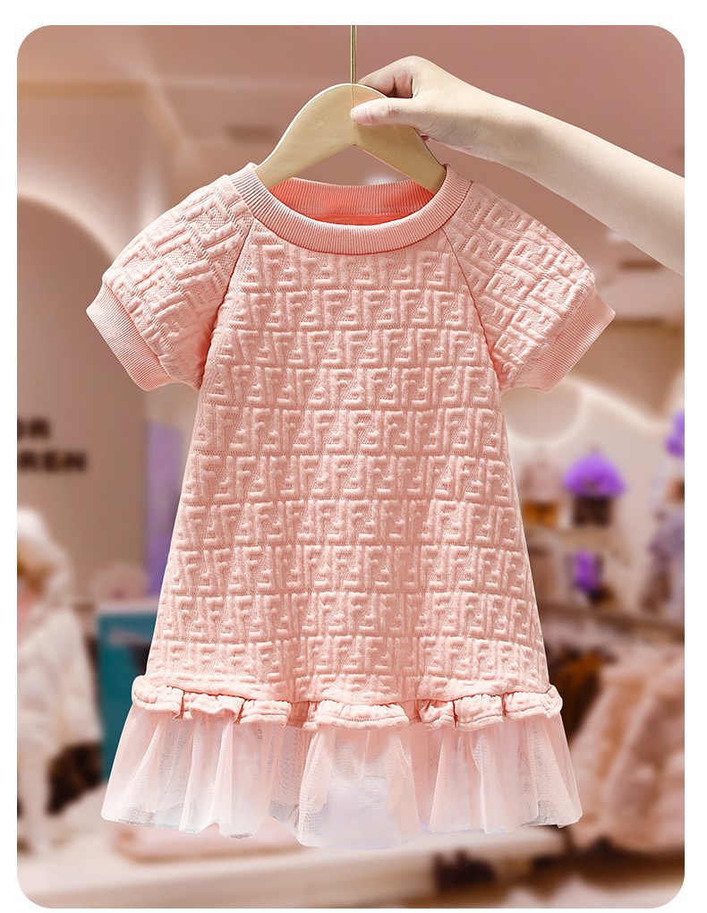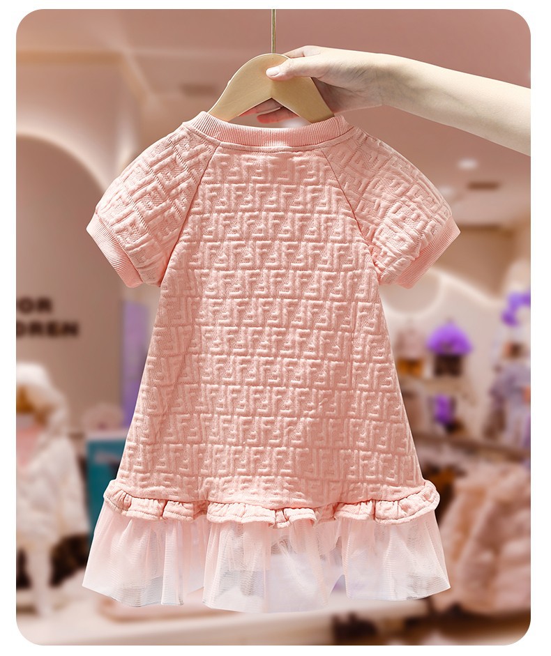 아마존 유럽 및 미국 아동복 여아 봄 여름 반팔 핑크 원피스, 즉시 배송 가능, 공주풍 여아 드레스