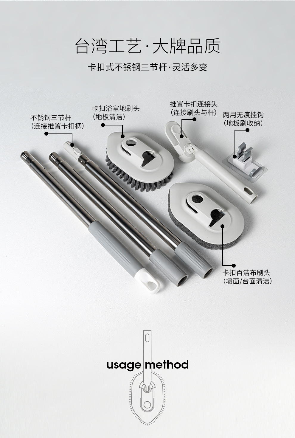 • 하드 헤어 브러시 + 스폰지 브러시 [1 로드 2 브러시 헤드]