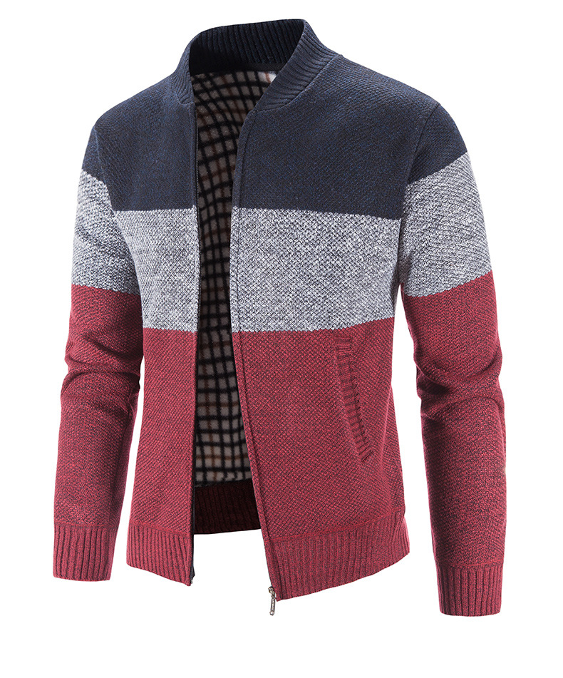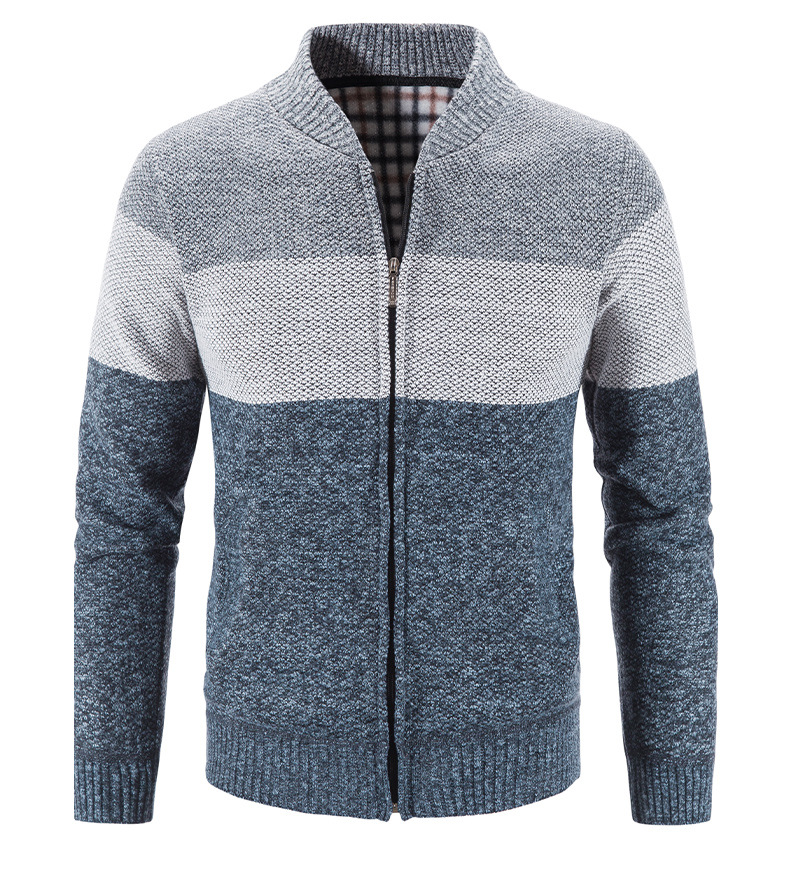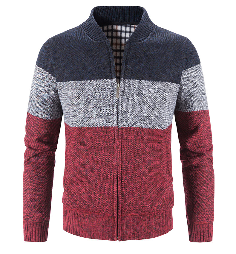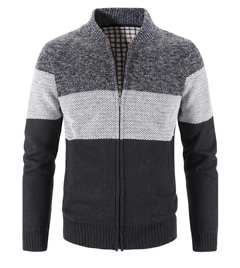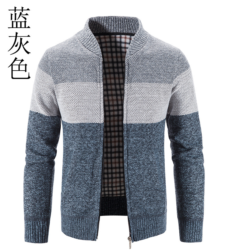 국경 간 가을과 겨울 새로운 남성 스웨터 기모 플러스 사이즈 아마존 남성 스웨터 코트 컬러 매칭 칼라 카디건