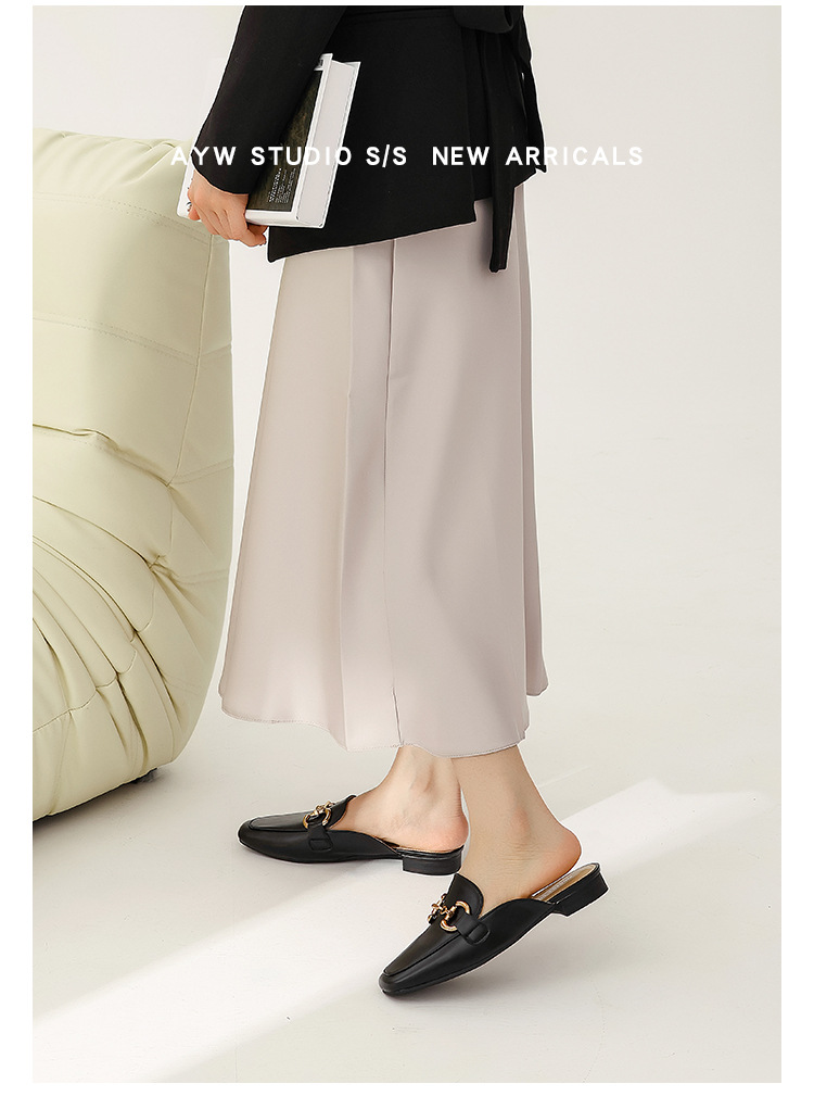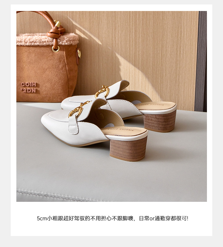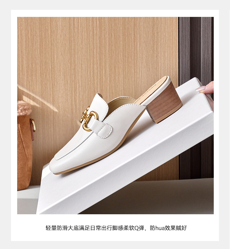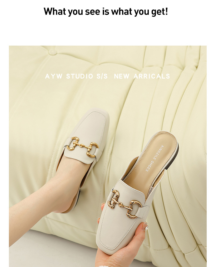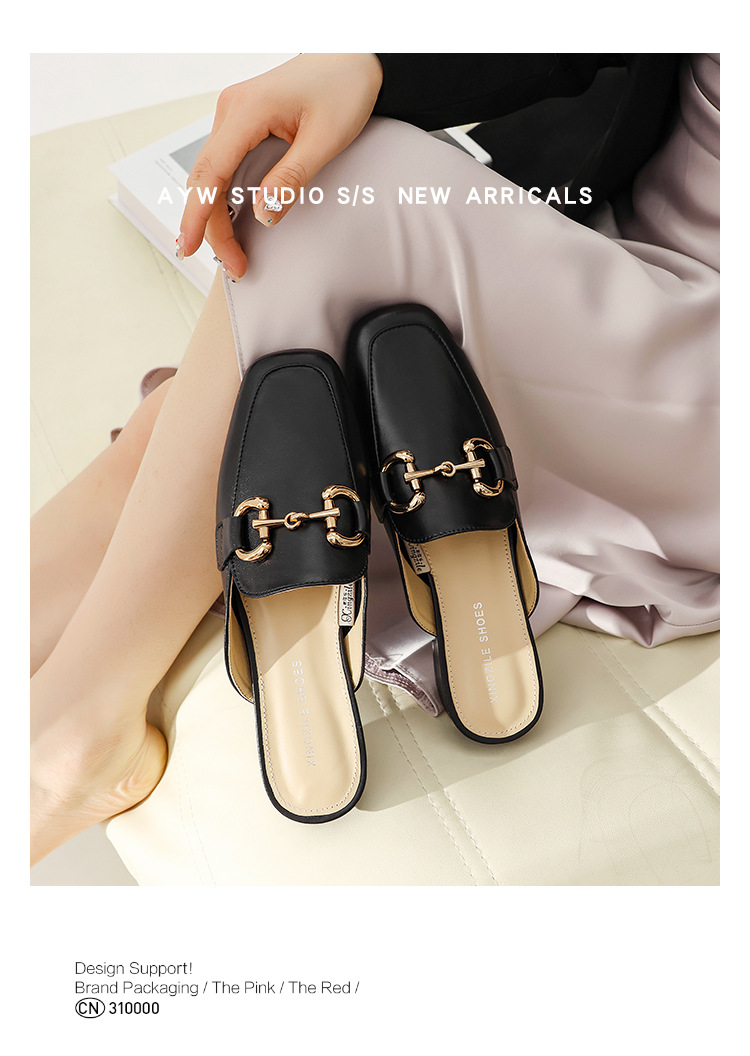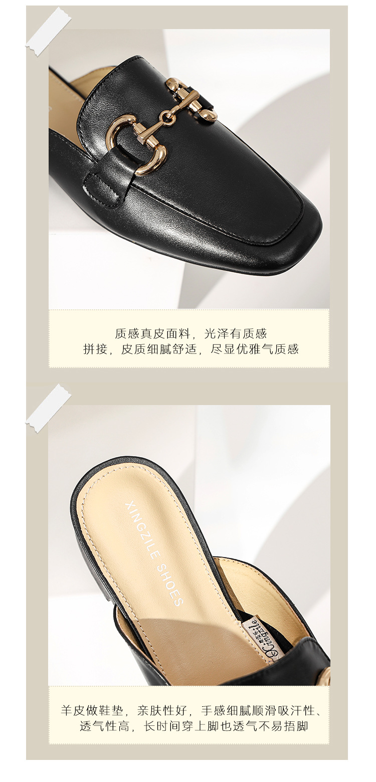 정품 가죽 커버 발가락 하프 슬리퍼 여성용 겉옷 2023 발 뒤꿈치가없는 말 버클 샌들과 새로운 스타일 샌들 게으른 신발 플랫 뮬 신발스토어 가기