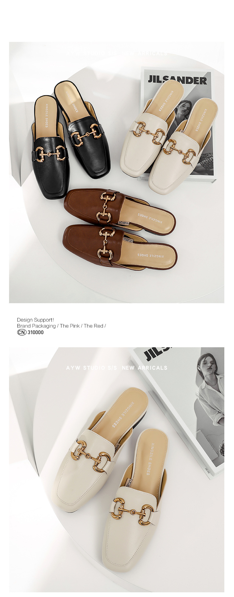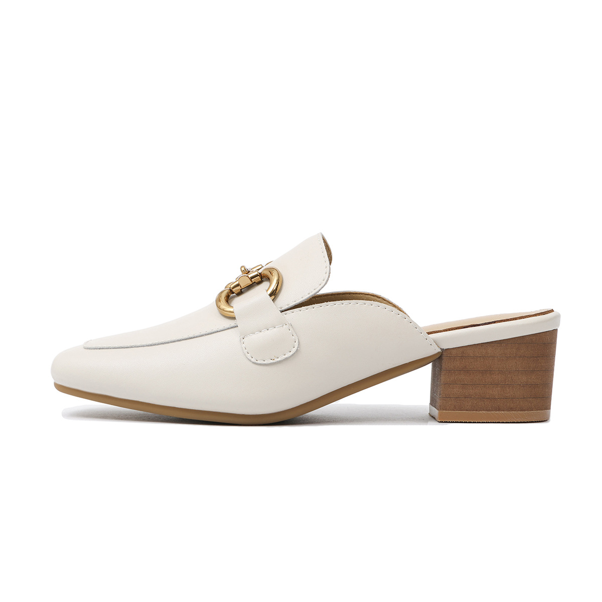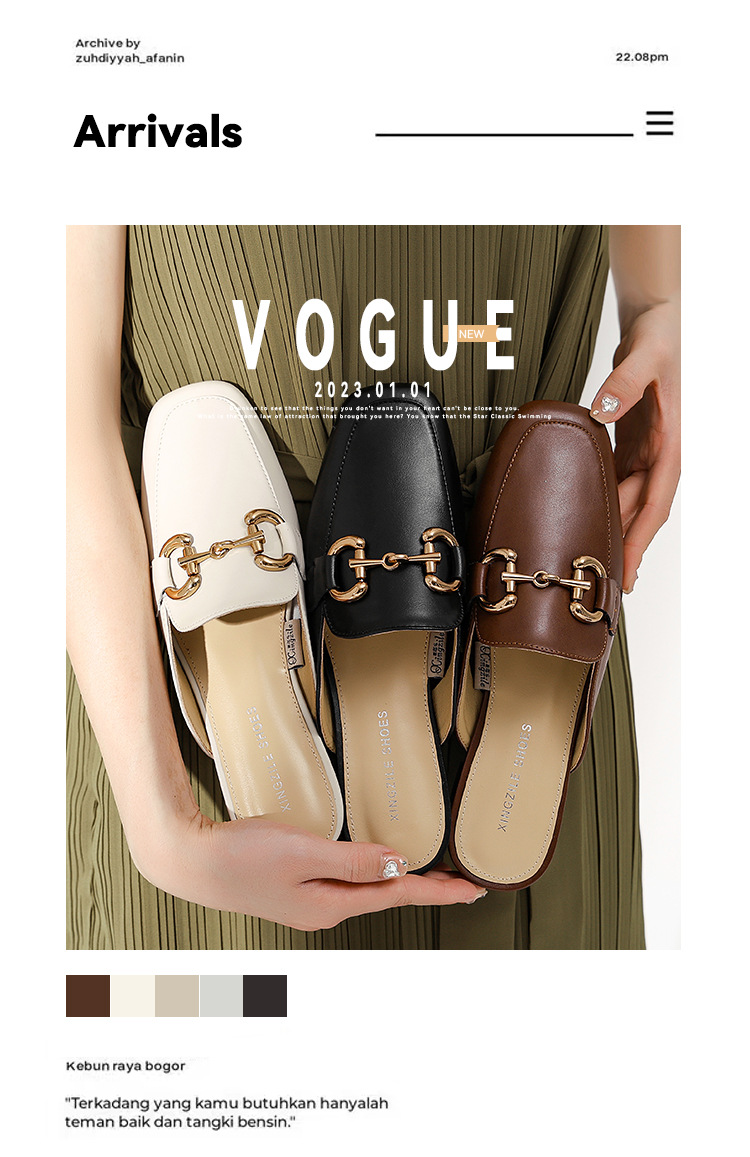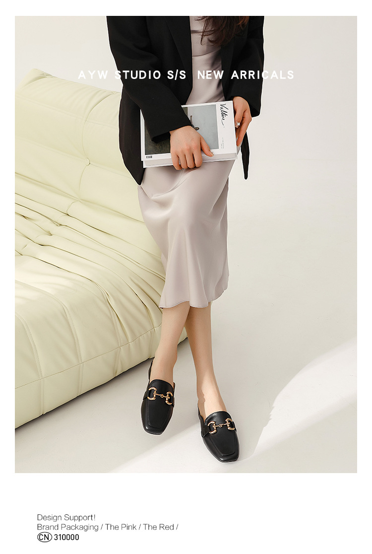 정품 가죽 커버 발가락 하프 슬리퍼 여성용 겉옷 2023 발 뒤꿈치가없는 말 버클 샌들과 새로운 스타일 샌들 게으른 신발 플랫 뮬 신발스토어 가기
