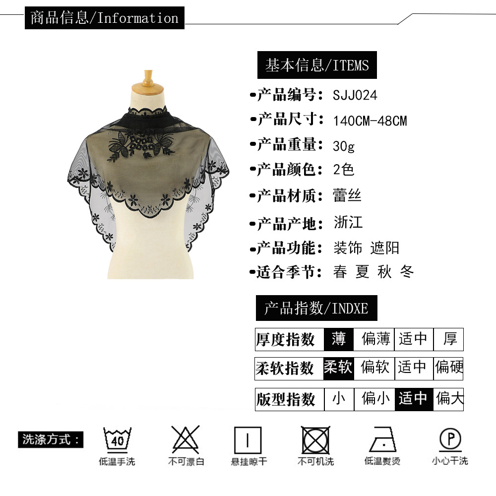 일본과 한국 단색 흑백 웨딩 액세서리 모자 패션 레이스 삼각형 스카프 클래식 레이스 스카프 SJJ024스토어 가기