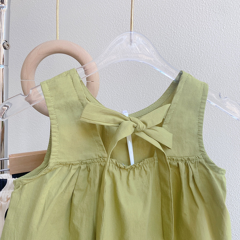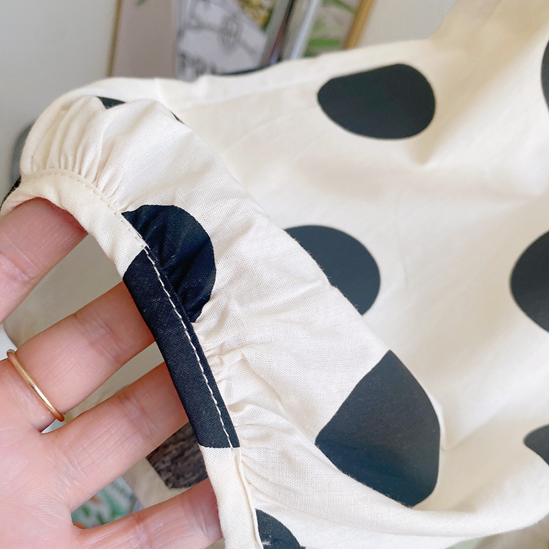 여아 민소매 세트 2023 새로운 여름 한국식 여성 보물 조끼 물방울 무늬 블루머 유행 투피스 세트