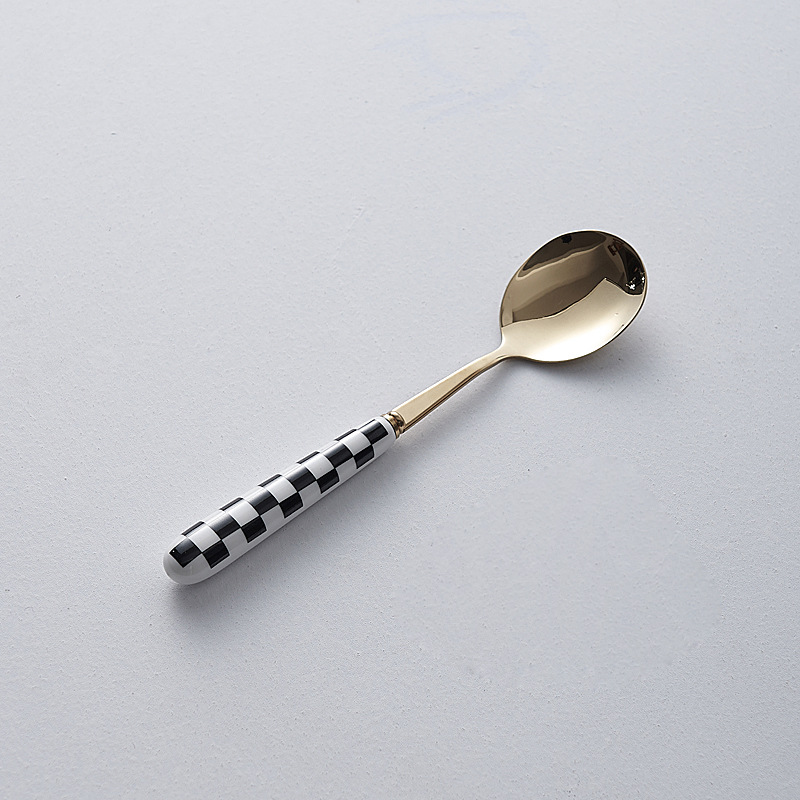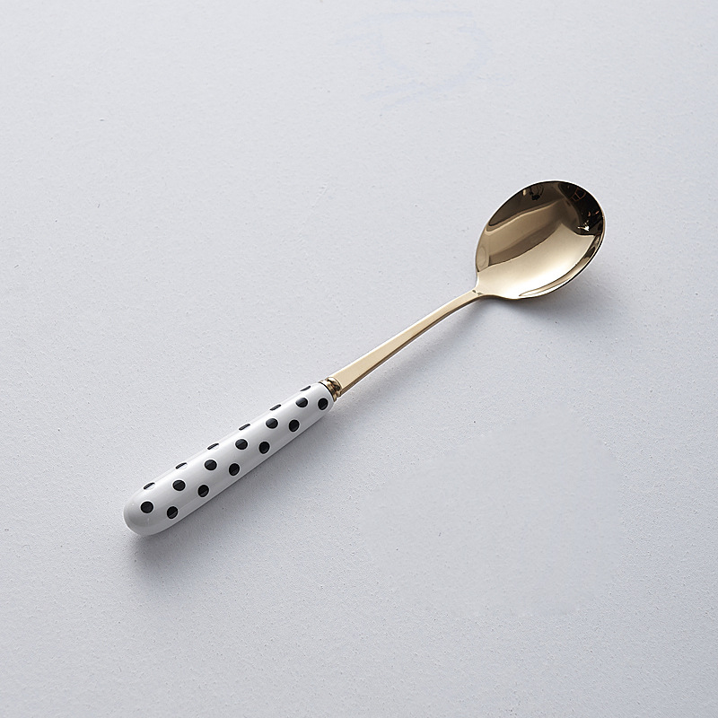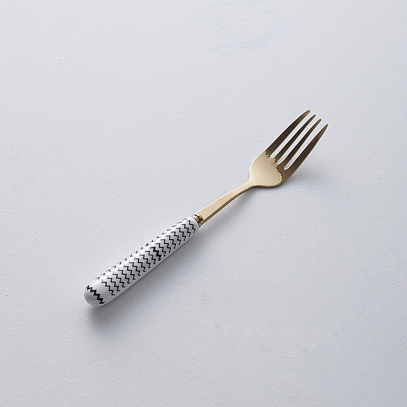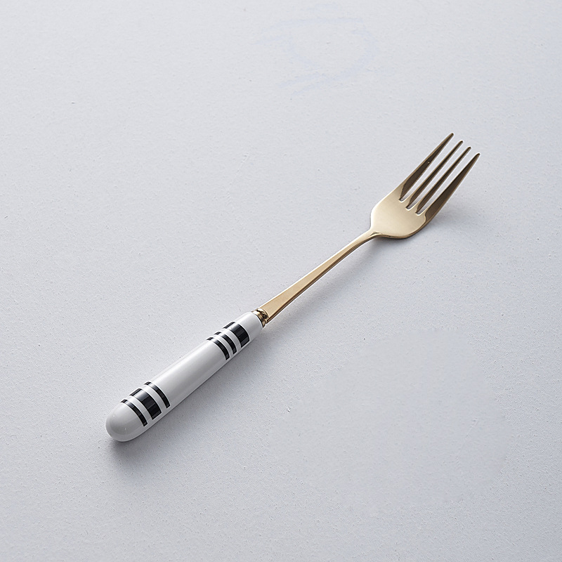 간단한 세라믹 스테인레스 스틸 스테이크 나이프와 포크 세트 스타일 나이프와 포크 스푼 창조적 인 과일 포크 서양 식품 식기 도매