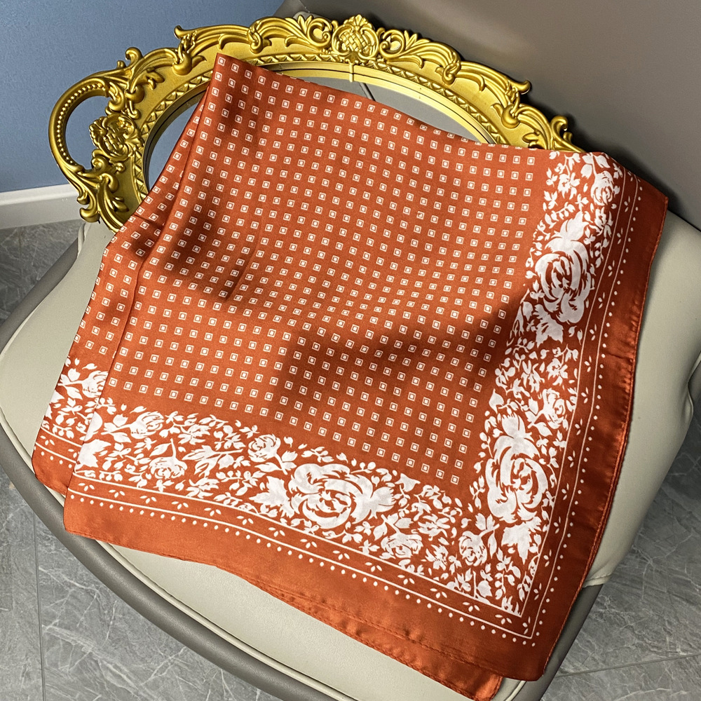 플라워 프린팅 70*70cm 모조 실크 스카프 한국판 작은 사각 스카프 어머니 스카프 넥타이 38 선물 둘레