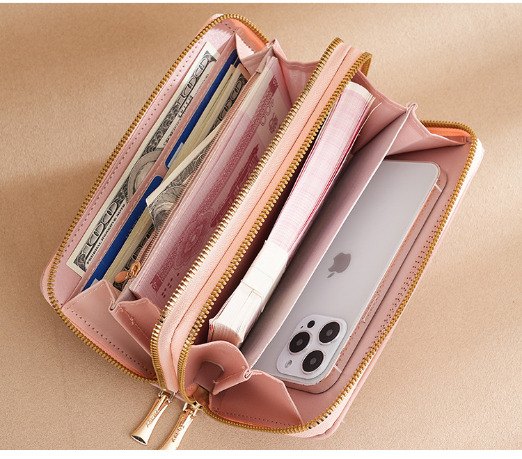 새로운 스타일 지갑 소녀의 긴 더블 레이어 지퍼 지갑 일본과 한국 스타일 패션 대용량 클러치 백 여성 국경스토어 가기