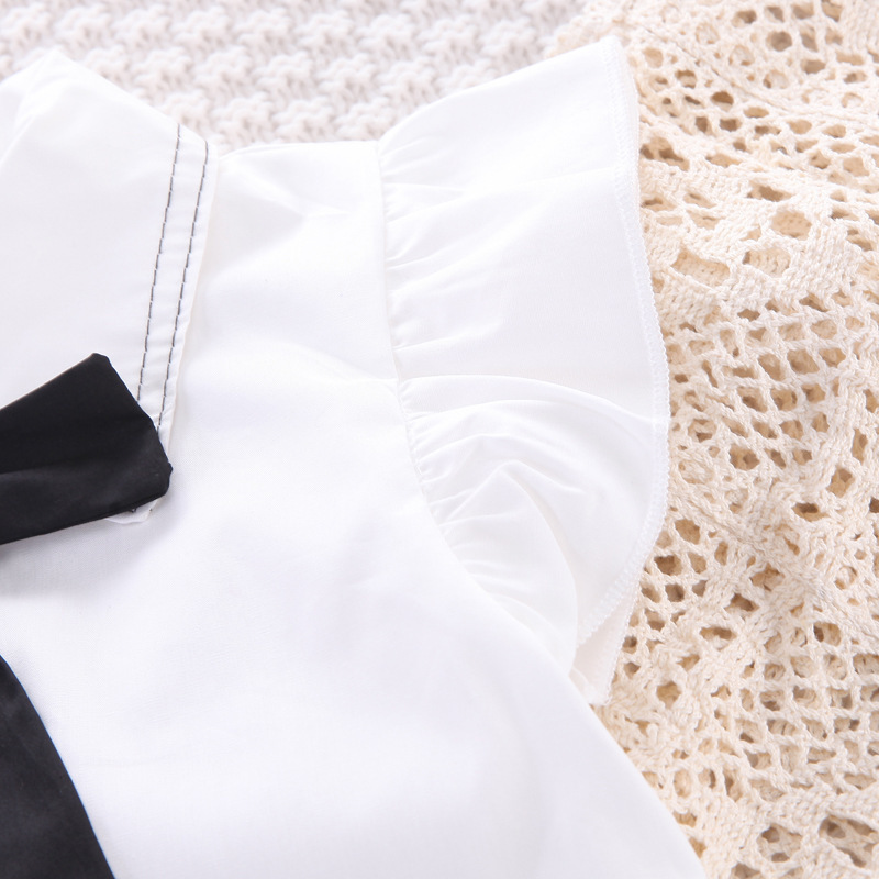대외 무역 아동 의류 소녀 온라인 인기 세트 2023 여름 새로운 작은 플라이 소매 셔츠 면 바지 서양 스타일 투피스 세트 조수스토어 가기