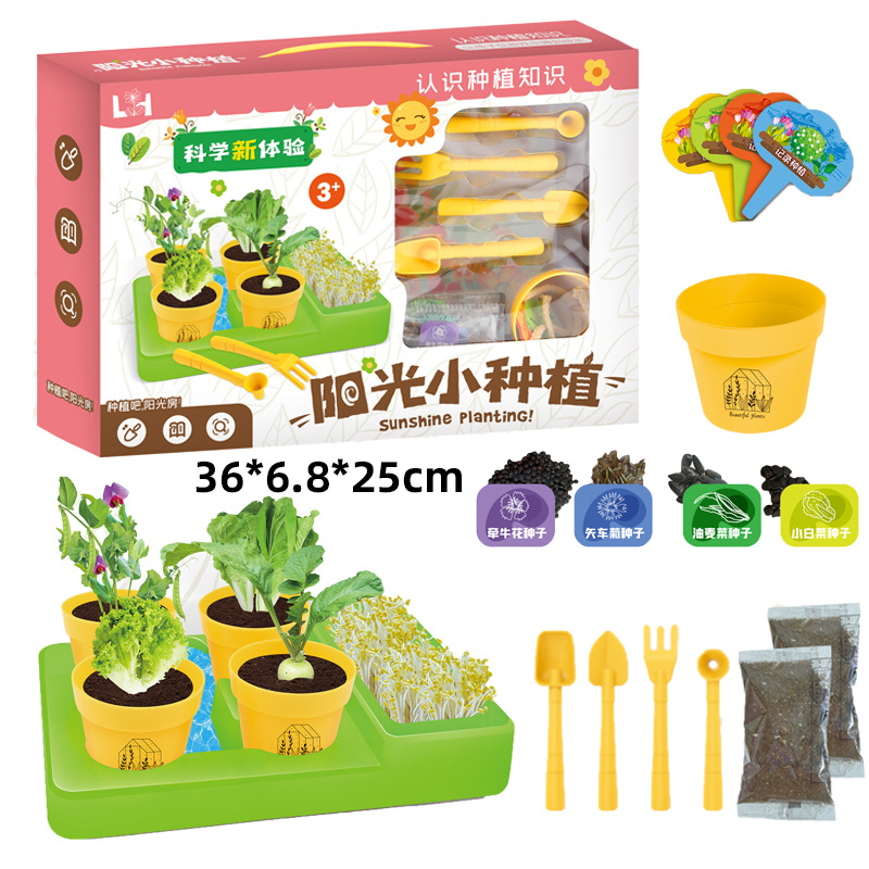 햇빛 심기 방 어린이 과학 작은 실험 소년과 소녀 수제 DIY 꽃 재배 야채 작은 화분 장난감 세트스토어 가기