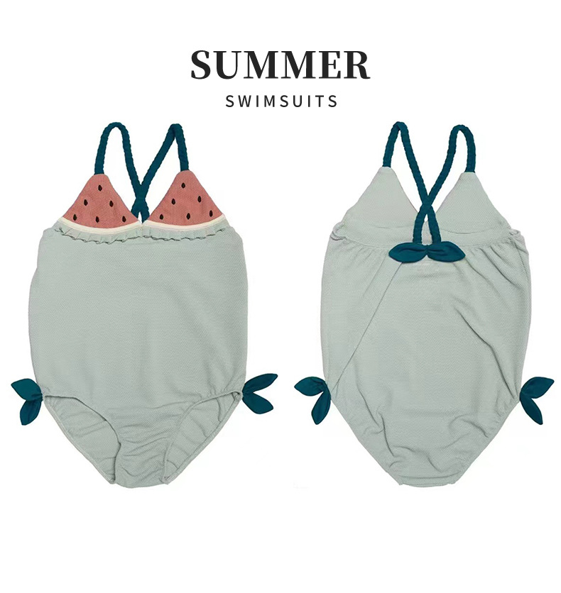 2025 새로운 여름 스타일 유행 어린이 과일 모양 수영복 귀여운 속건성 소녀 서스펜더 수영복