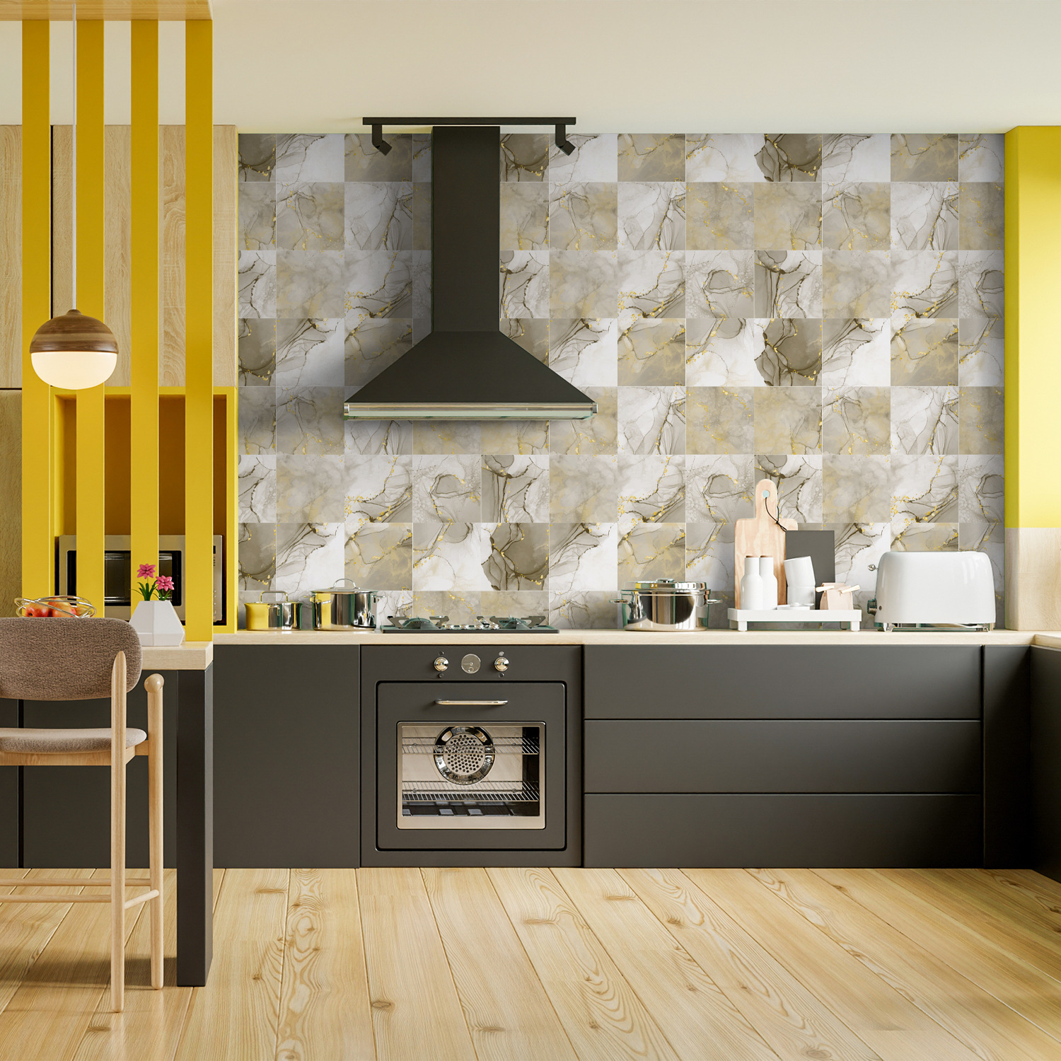 Funlife 유럽식 새로운 대리석 질감 두꺼운 타일 스티커 주방 방수 및 내유성 벽 스티커 KTS 031