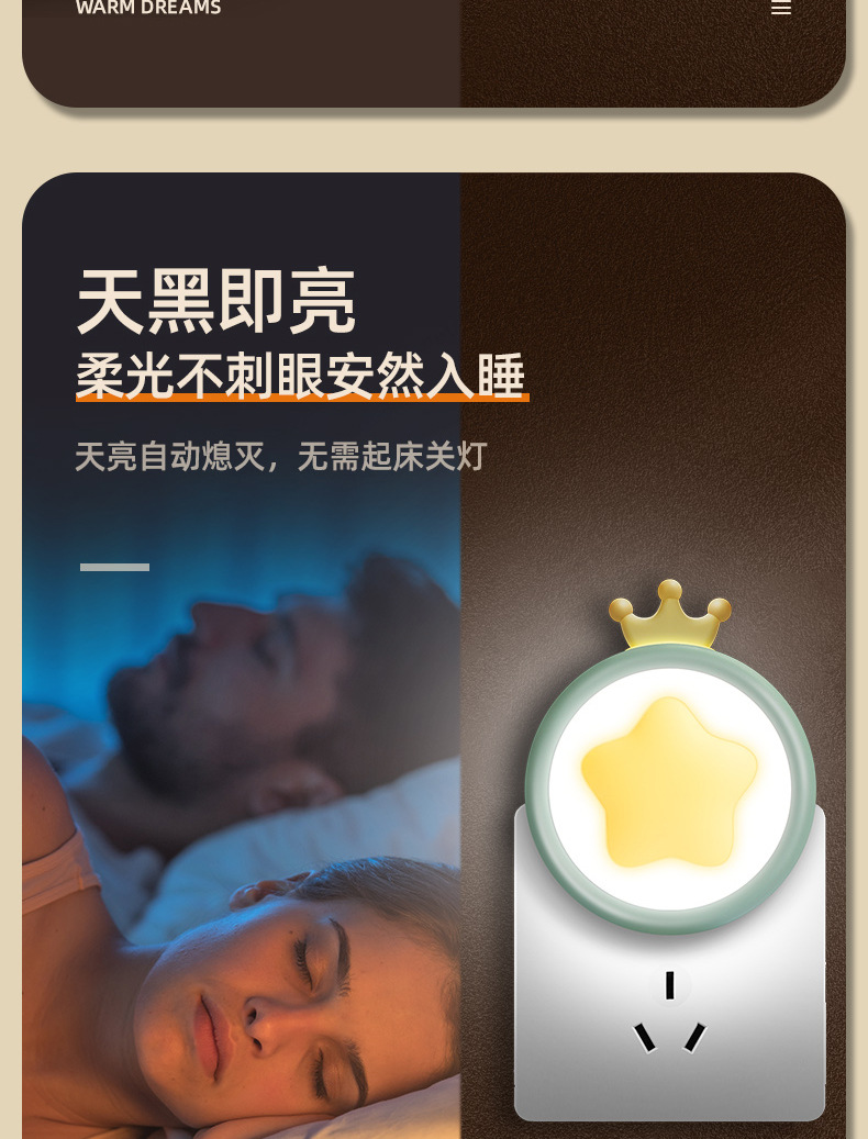 코리아 라이트 컨트롤 LED 인덕션 스타 크라운 소켓 야간 조명 침실 머리맡 수면 램프 선물