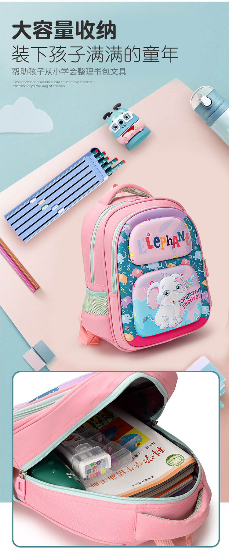 봄 새로운 1-4 학년 소년 소녀 귀여운 만화 배낭 초등학생을위한 대용량 내마모성 랙 책가방스토어 가기