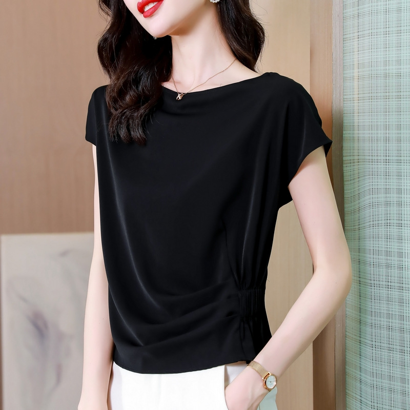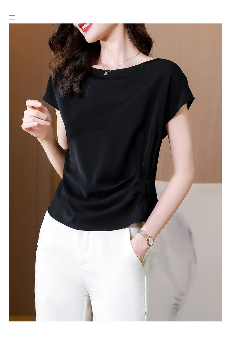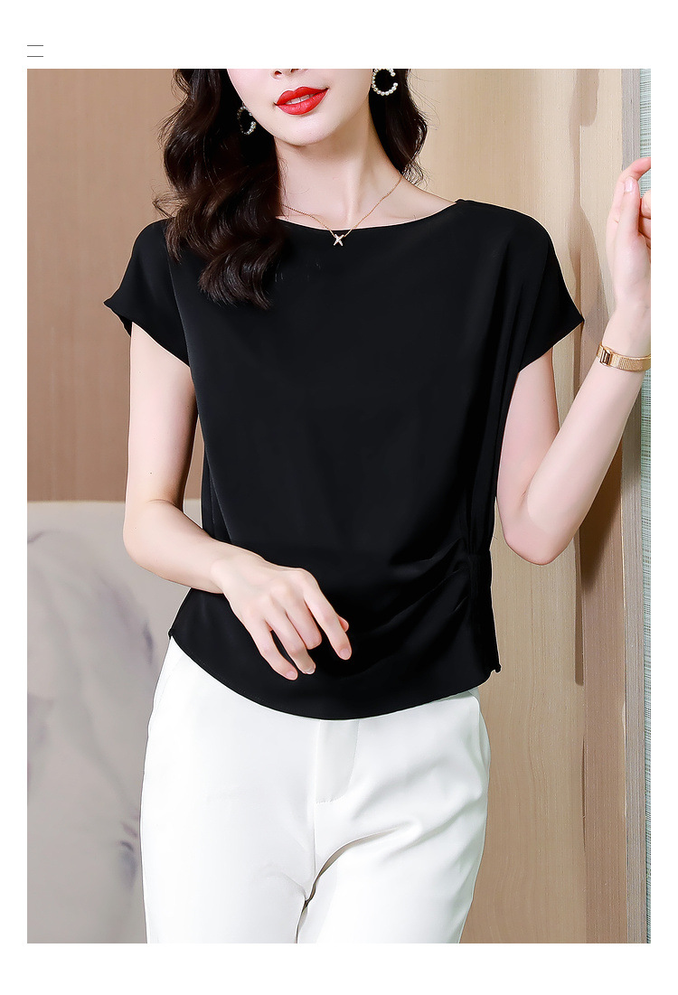 시폰 셔츠 여성 여름 2024 새로운 스타일 탑 세련된 작은 셔츠 반팔 티셔츠 셔츠스토어 가기