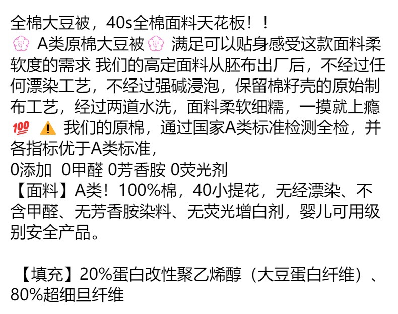 베이비 클래스 A 면 대두 섬유 봄 가을 이불 사계절 세탁 이불 코어 더블 겨울 이불 에어컨 이불 여름 시원한 이불