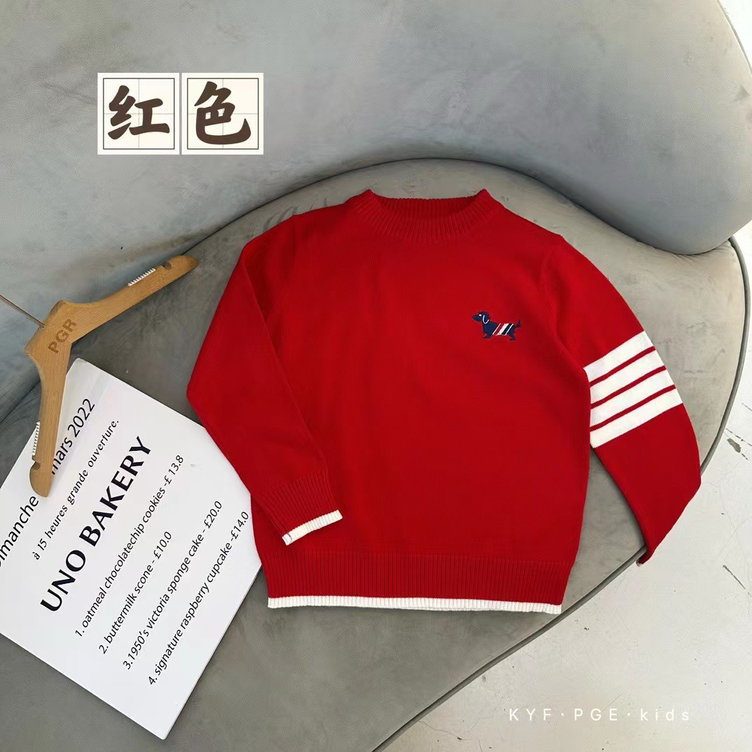 어린이 강아지 크루넥 풀오버 스웨터 2023 봄과 가을 새로운 패션 브랜드 4 바 TB 대학 스타일 어린이 크로스 보더스토어 가기
