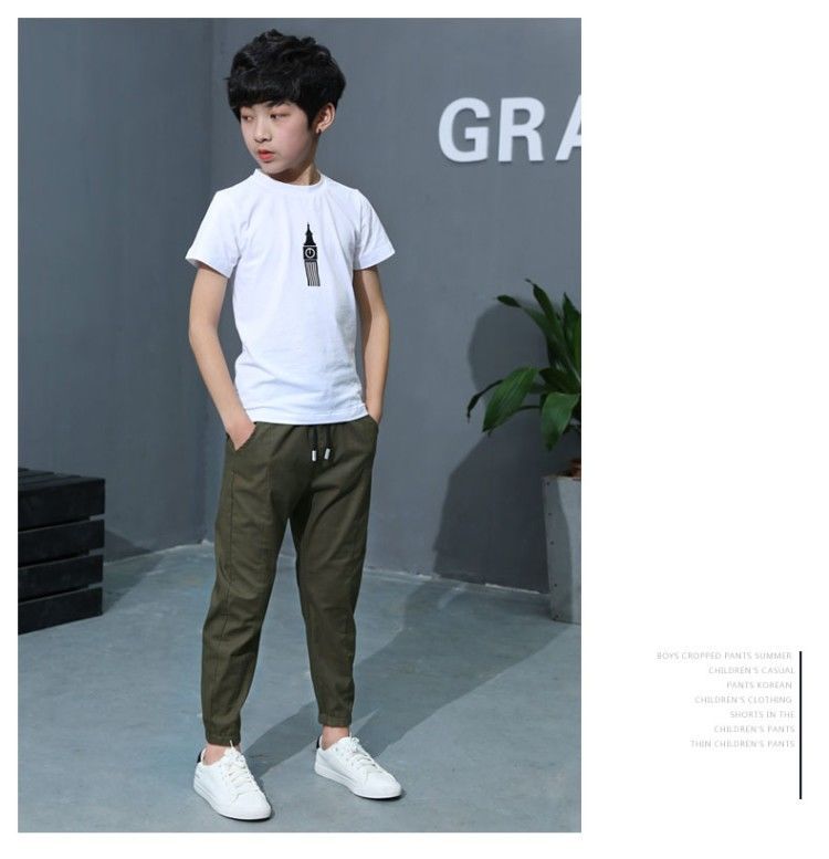 아동복 어린이 스포츠 발목 바지 여름 중대형 어린이 속건 바지 면 린넨 캐주얼 편안한 소년의 모기 방지 바지스토어 가기