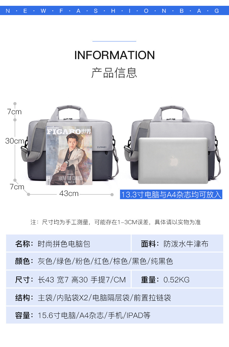 도매 노트북 가방 한국 대용량 싱글 숄더 크로스바디 비즈니스 서류 가방 충격 방지 휴대용 노트북 가방스토어 가기