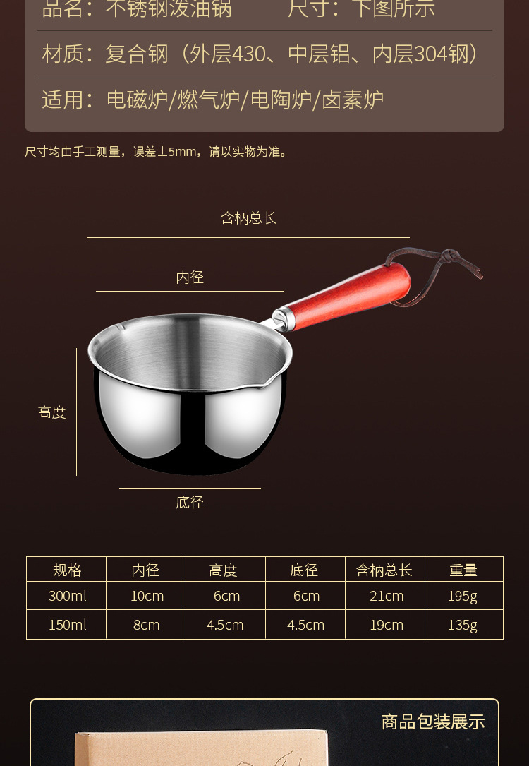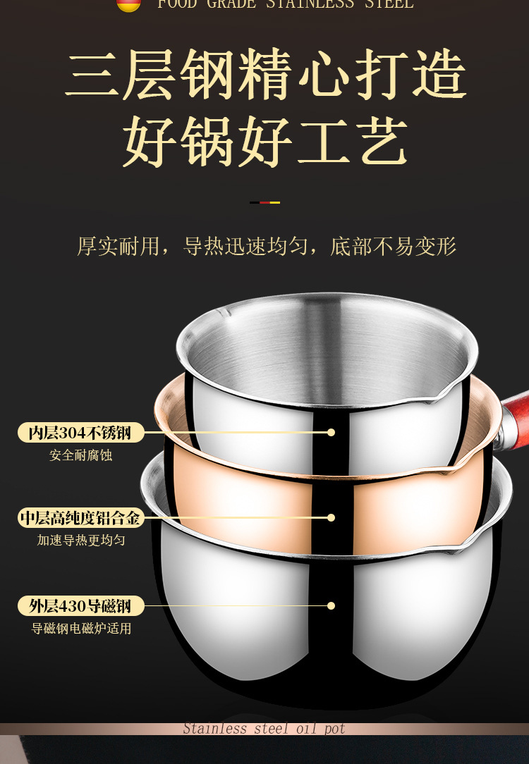 스테인레스 스틸 오일 쏟아져 작은 냄비 3 층 강철 그물 빨간 뜨거운 기름 작은 냄비 미니 우유 냄비 기름 쏟아져 특수 유물스토어 가기