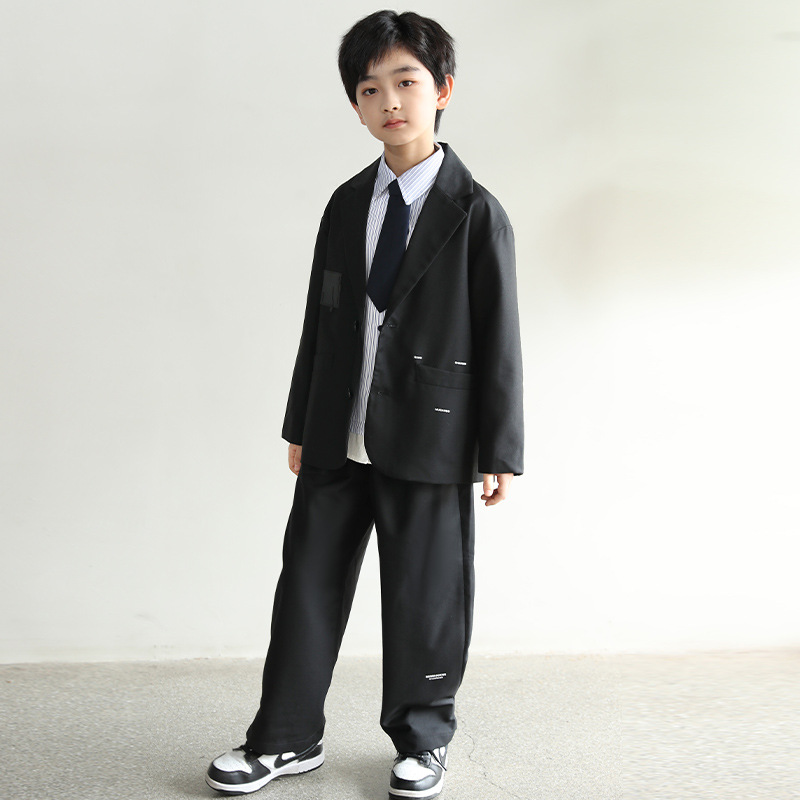 봄 새로운 세트 세트 소년 잘 생긴 세트 재킷 잘 생긴 스트라이프 긴 소매 셔츠 느슨한 캐주얼 바지스토어 가기