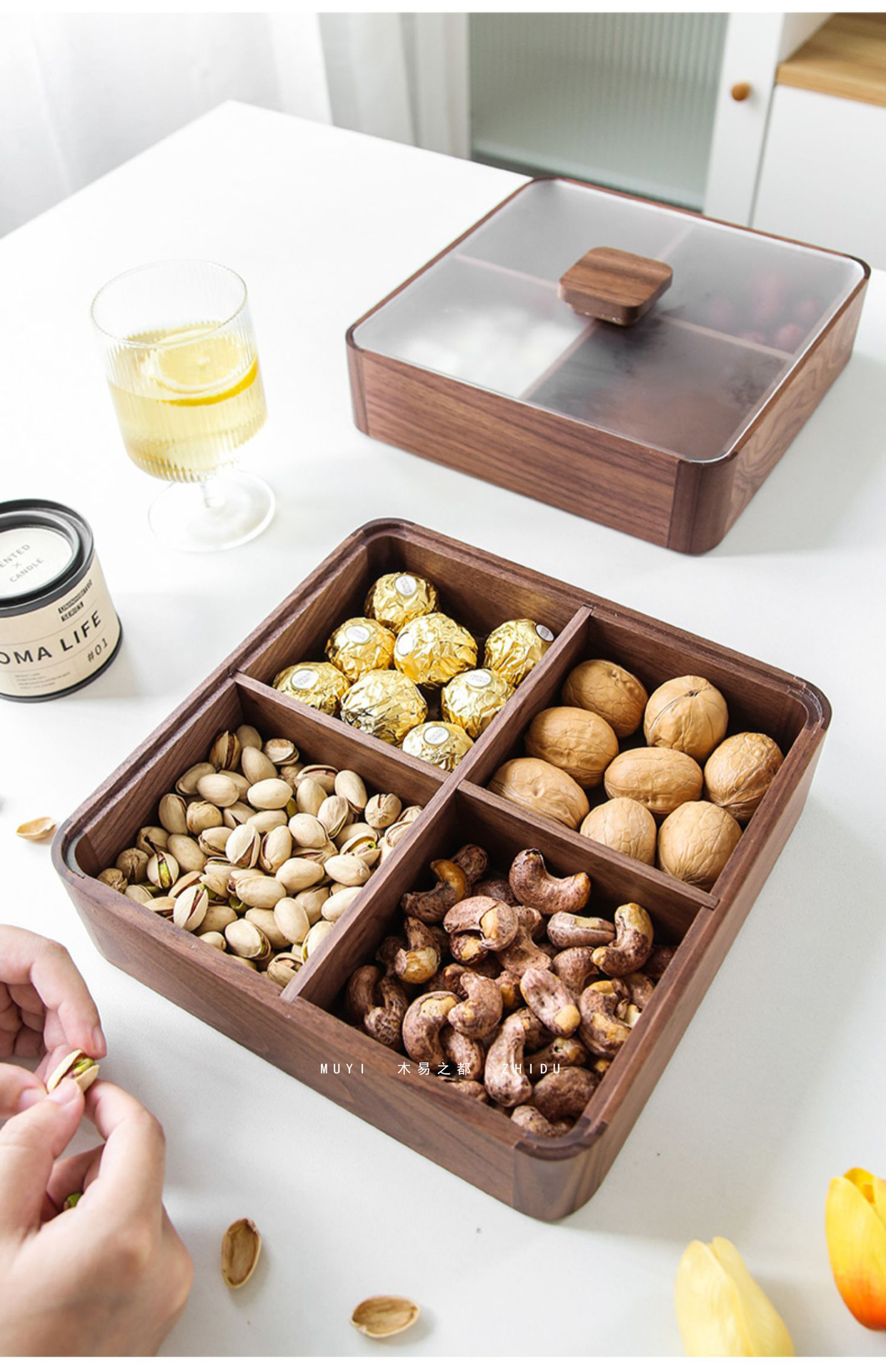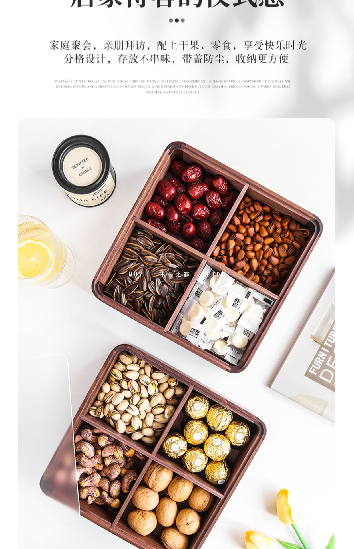 검은 호두 과일 접시 가정용 거실 말린 과일 상자 새해 차 테이블 너트 사탕 상자 분할 구획 스낵 플레이트 펜던트 플레이트