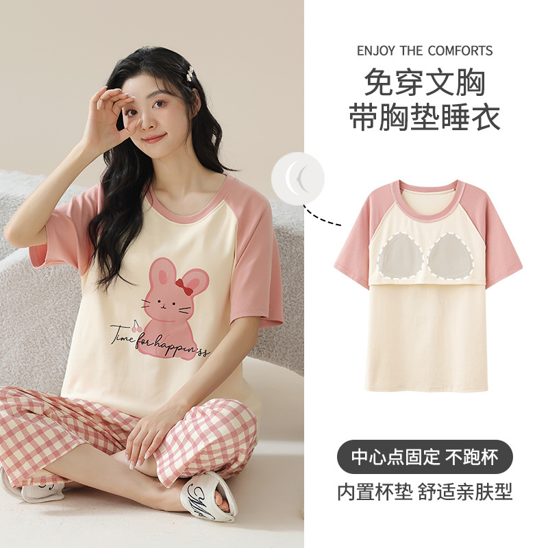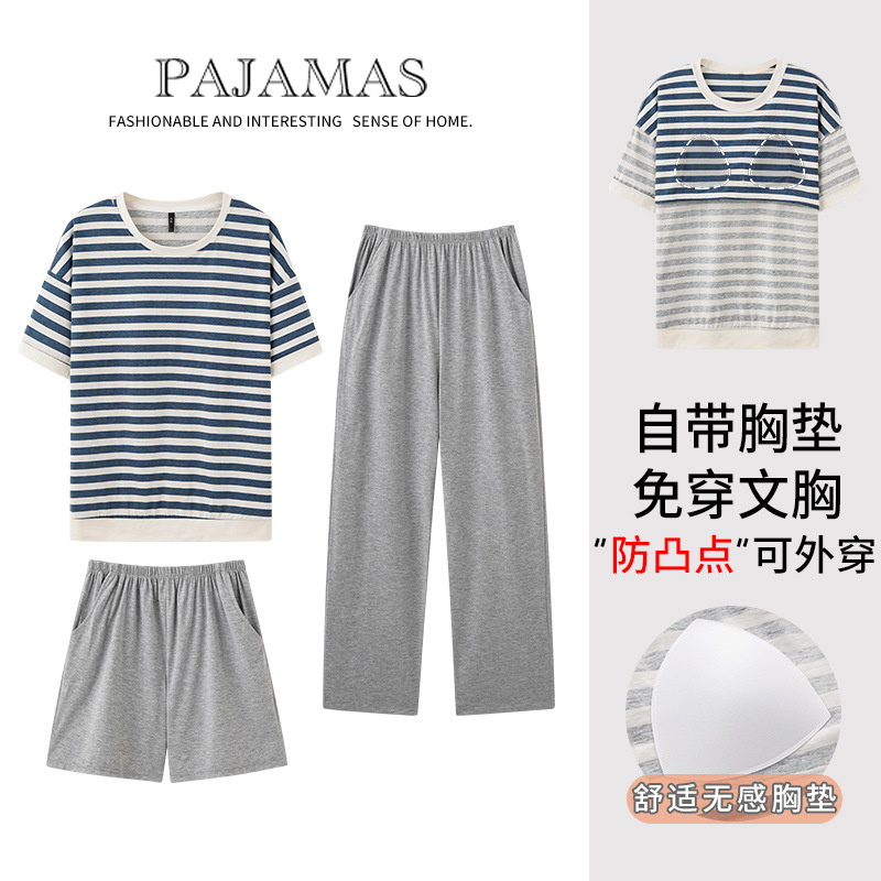 봄과 여름 6040 가슴 패드 여성의 여름 큰 크기의 짧은 소매 반바지 간단한 캐주얼 의상 여성용 세트