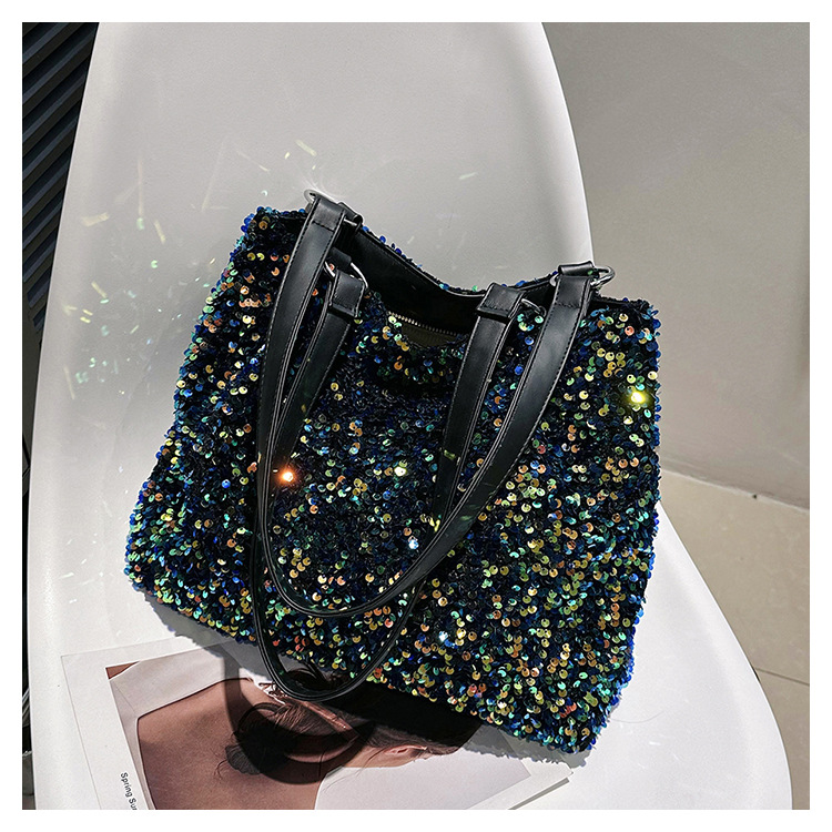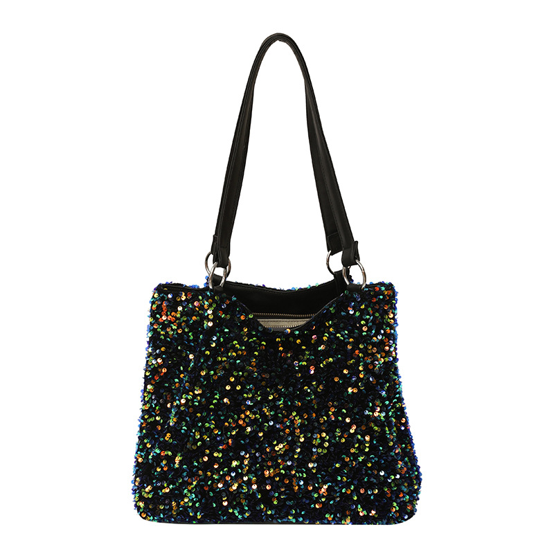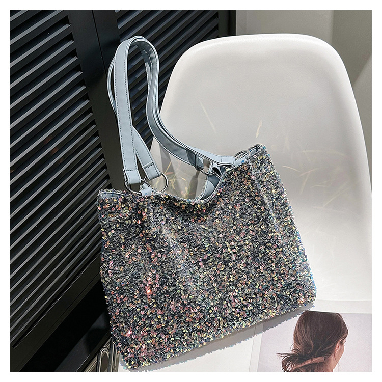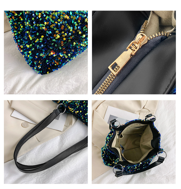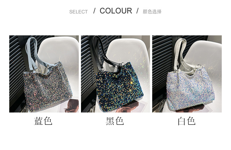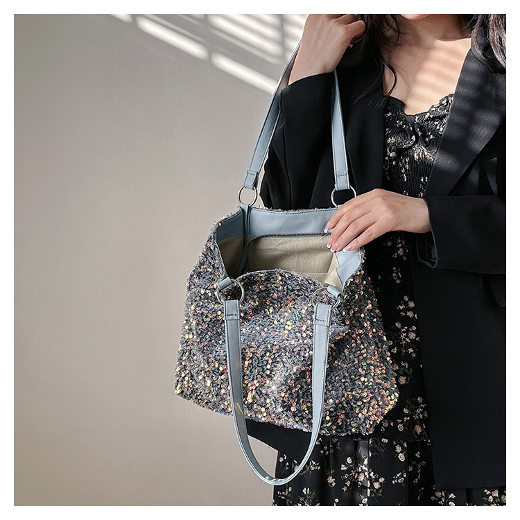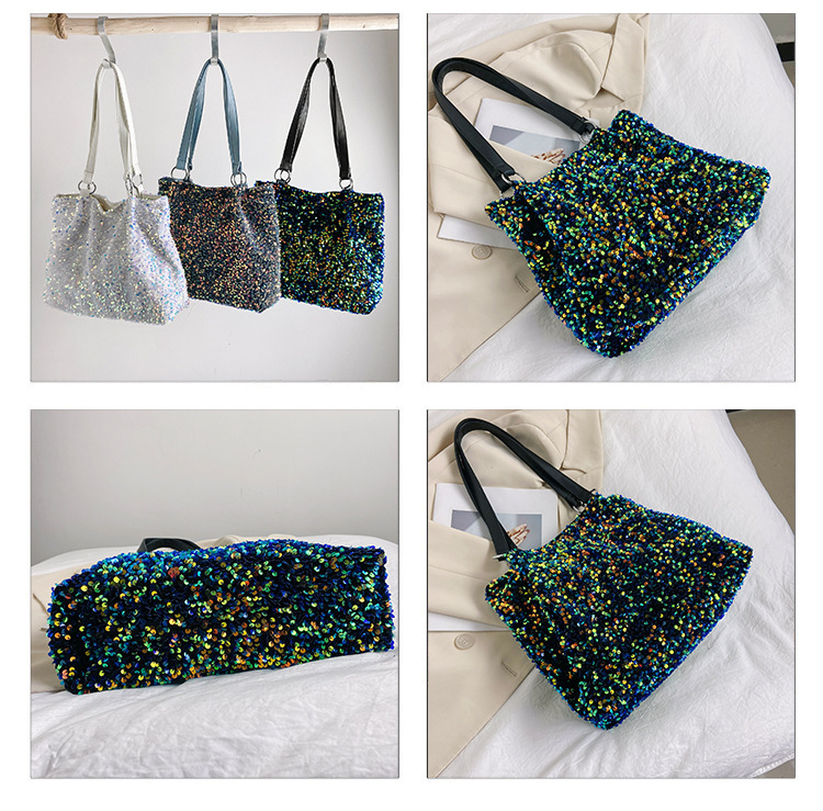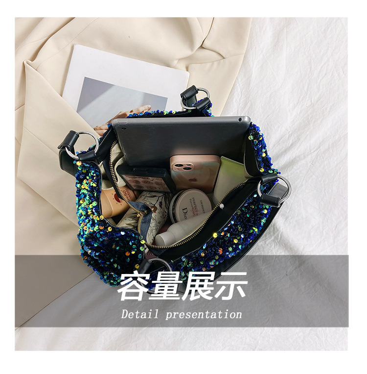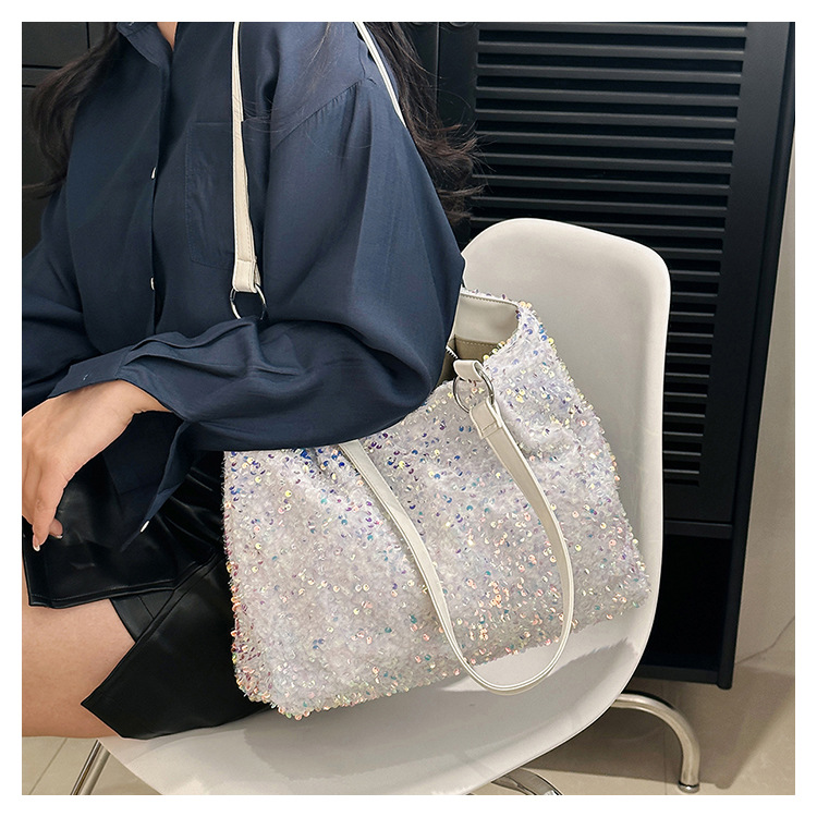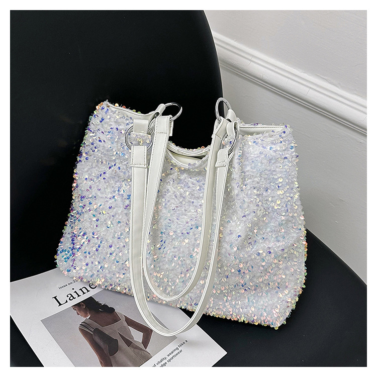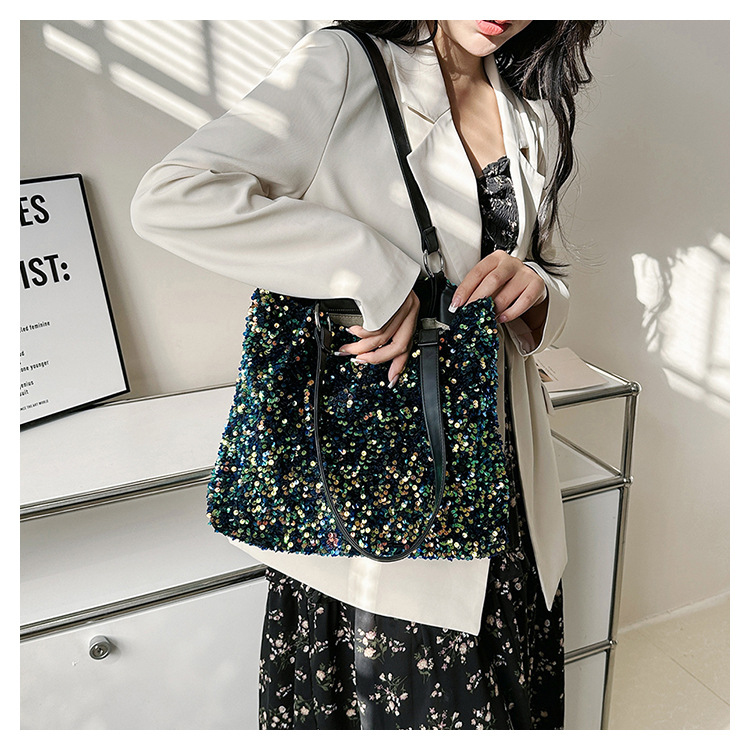 대용량 겨드랑이 가방 새로운 봄 2025 유럽과 미국의 패션 스팽글 다채로운 어깨 가방 숙녀 버킷 가방