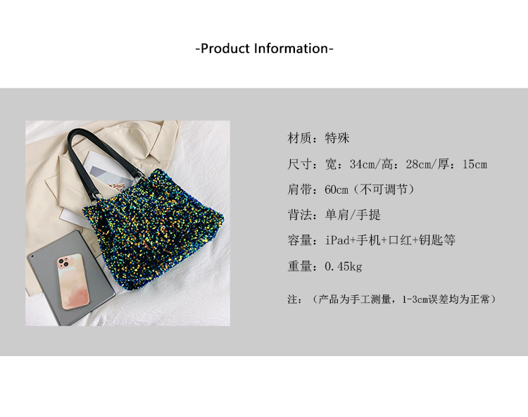 대용량 겨드랑이 가방 새로운 봄 2025 유럽과 미국의 패션 스팽글 다채로운 어깨 가방 숙녀 버킷 가방스토어 가기