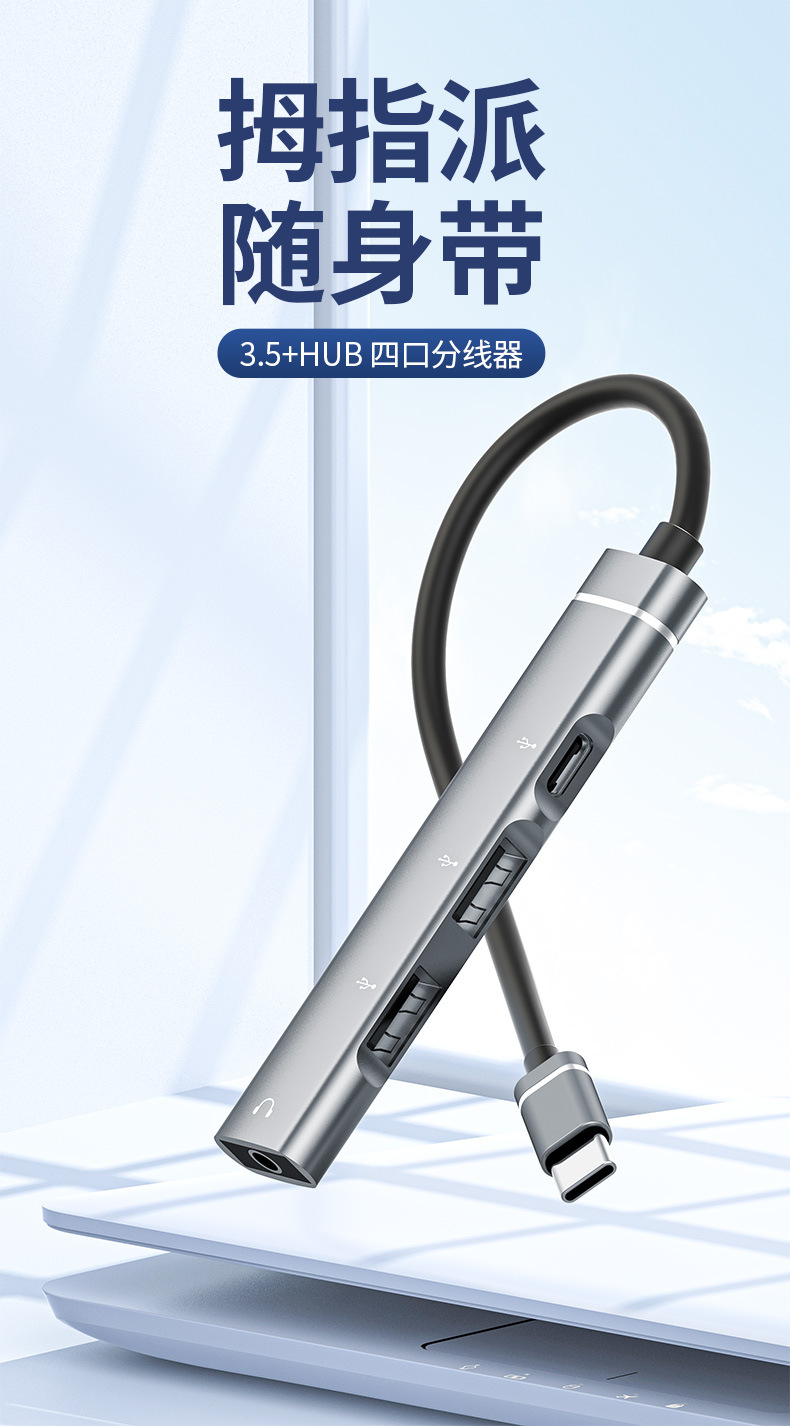 유형-c ~ 3.5 헤드셋 도킹 스테이션 금속 USB 허브 디지털 어댑터 듀얼 USB 데이터 전송 변환스토어 가기