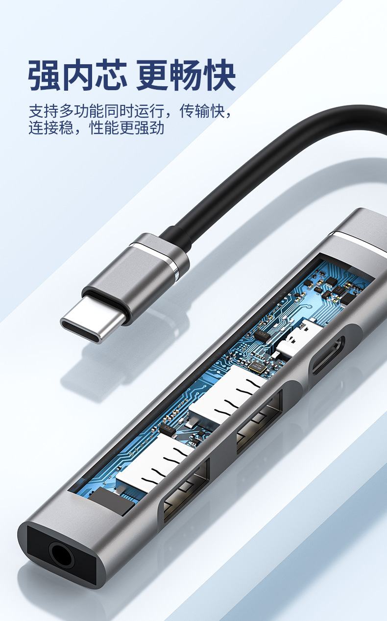 유형-c ~ 3.5 헤드셋 도킹 스테이션 금속 USB 허브 디지털 어댑터 듀얼 USB 데이터 전송 변환