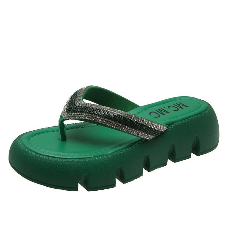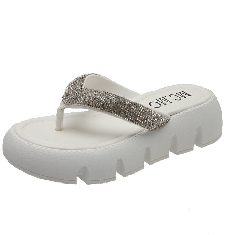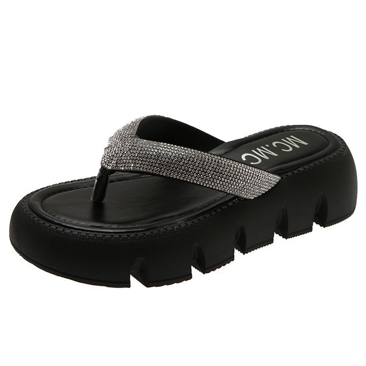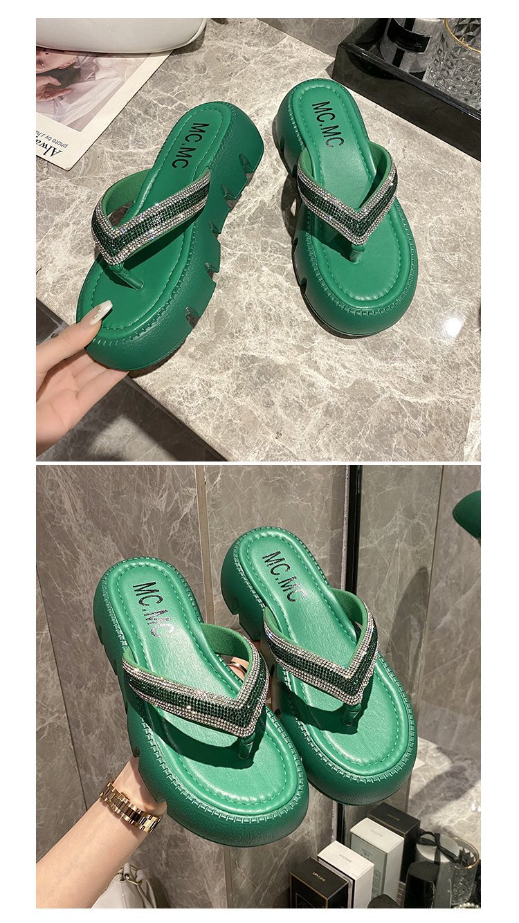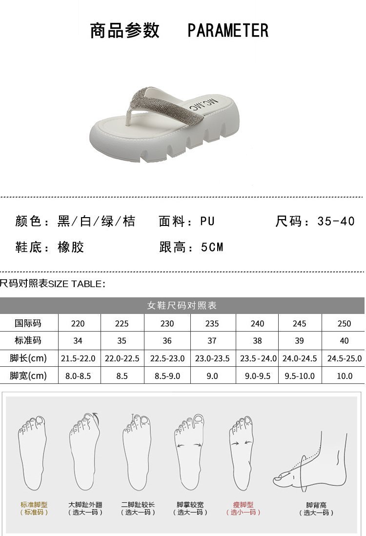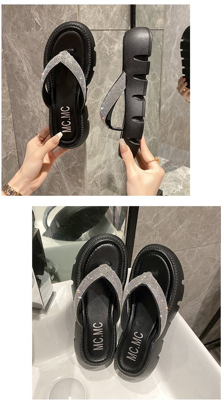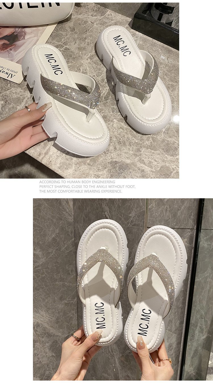 플랫폼 두꺼운 바닥 플립 플롭 여성 복장 2023 새로운 여름 한국 스타일 쁘띠 라인 석 끈 샌들