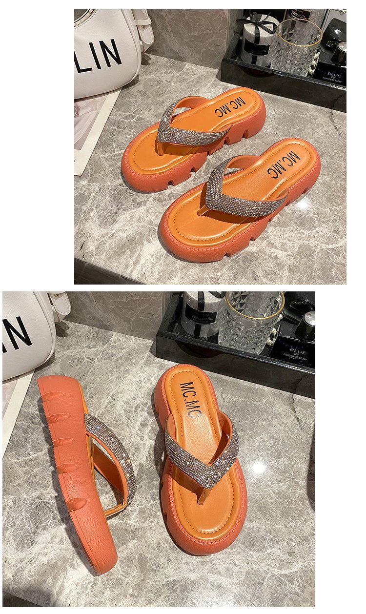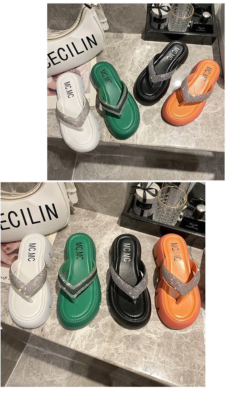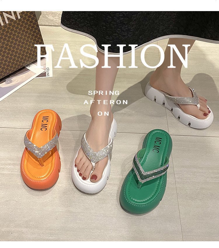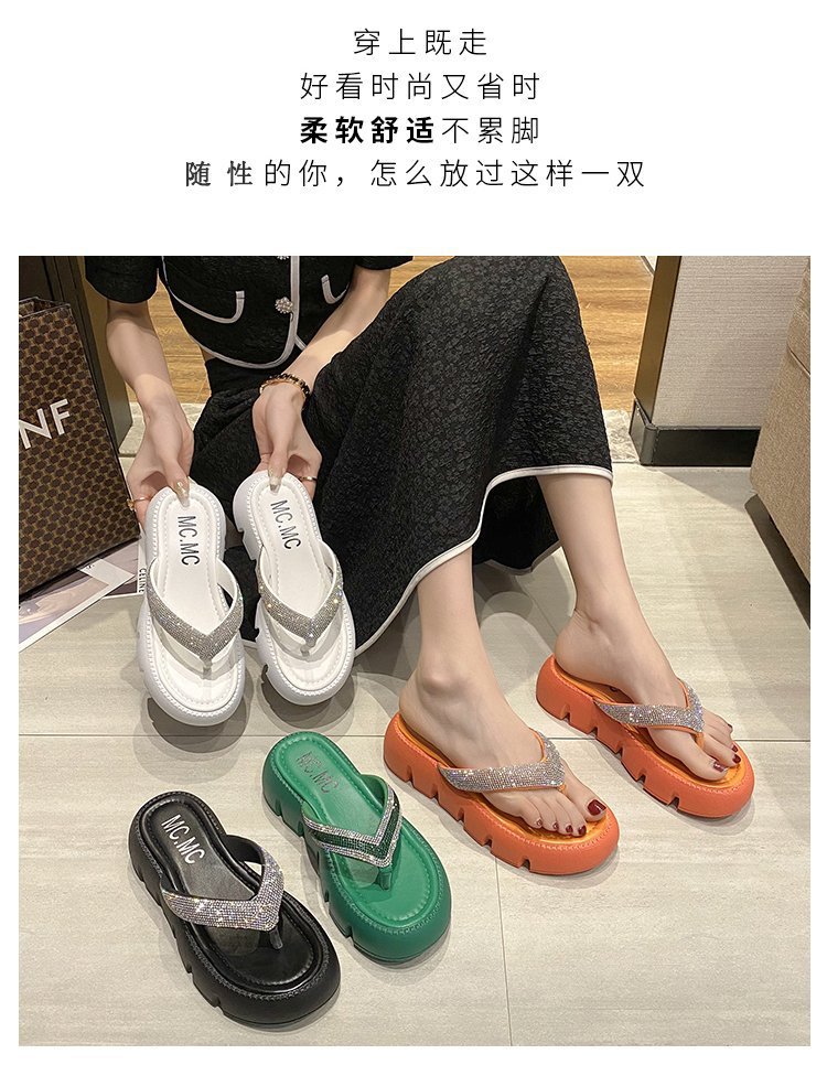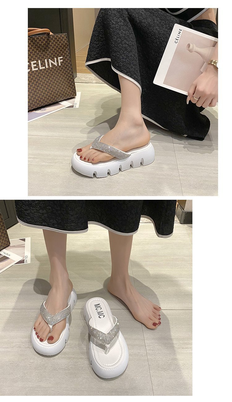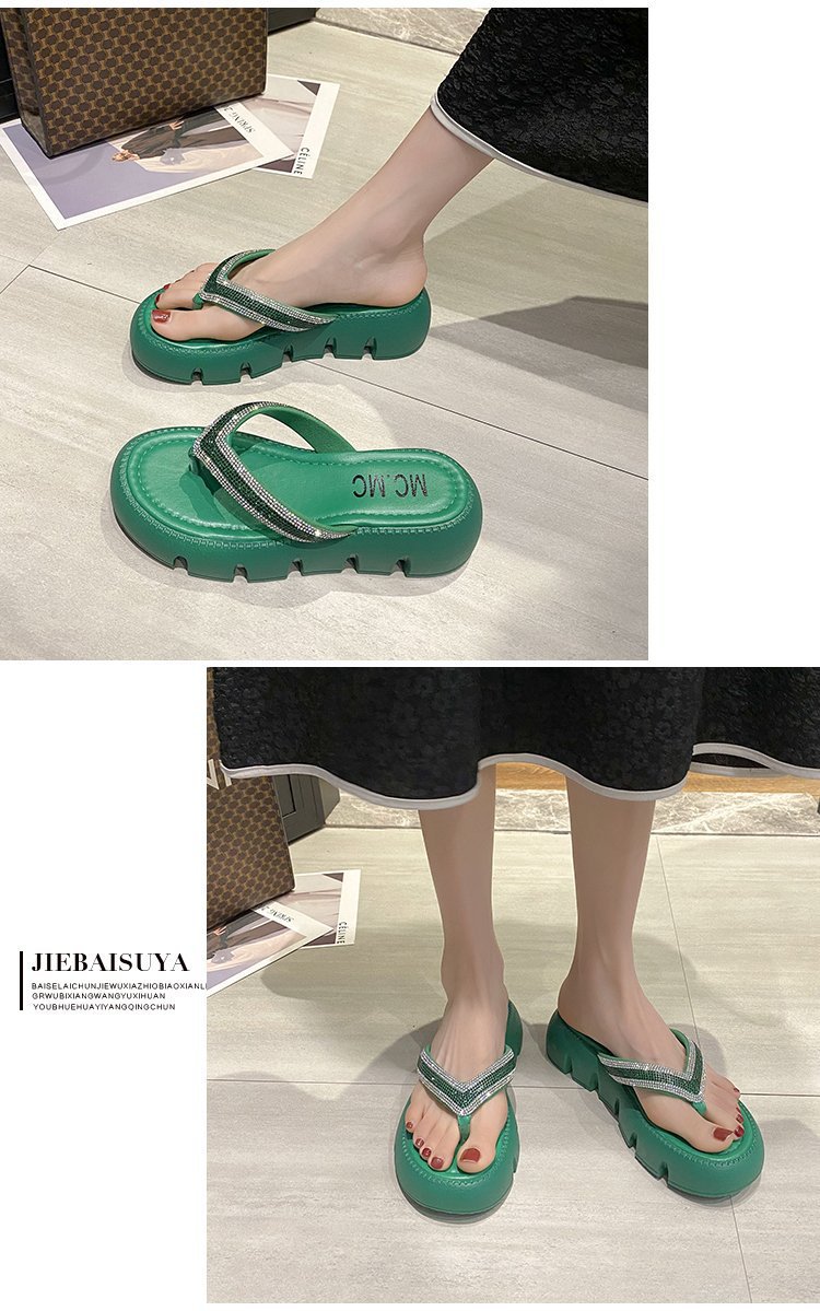 플랫폼 두꺼운 바닥 플립 플롭 여성 복장 2023 새로운 여름 한국 스타일 쁘띠 라인 석 끈 샌들스토어 가기