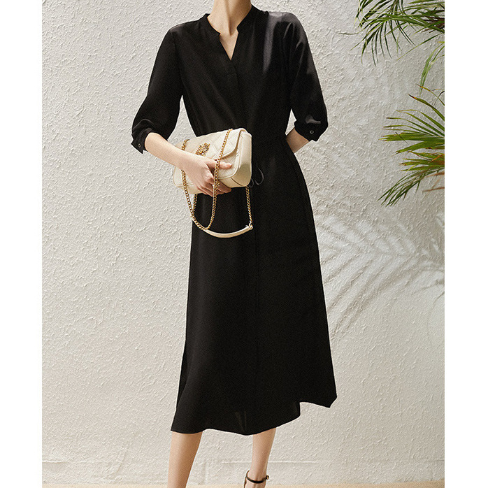 우아한 실크 스커트 2 색 하이 웨이스트 슬리밍 23mm 스트레치 크레이프 뽕나무 실크 셔츠 원피스 여름 여성 의류