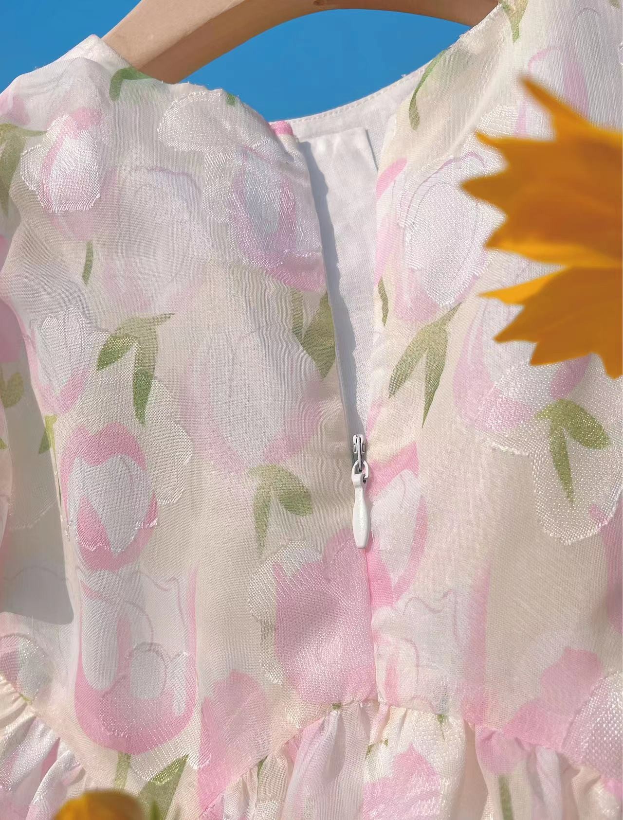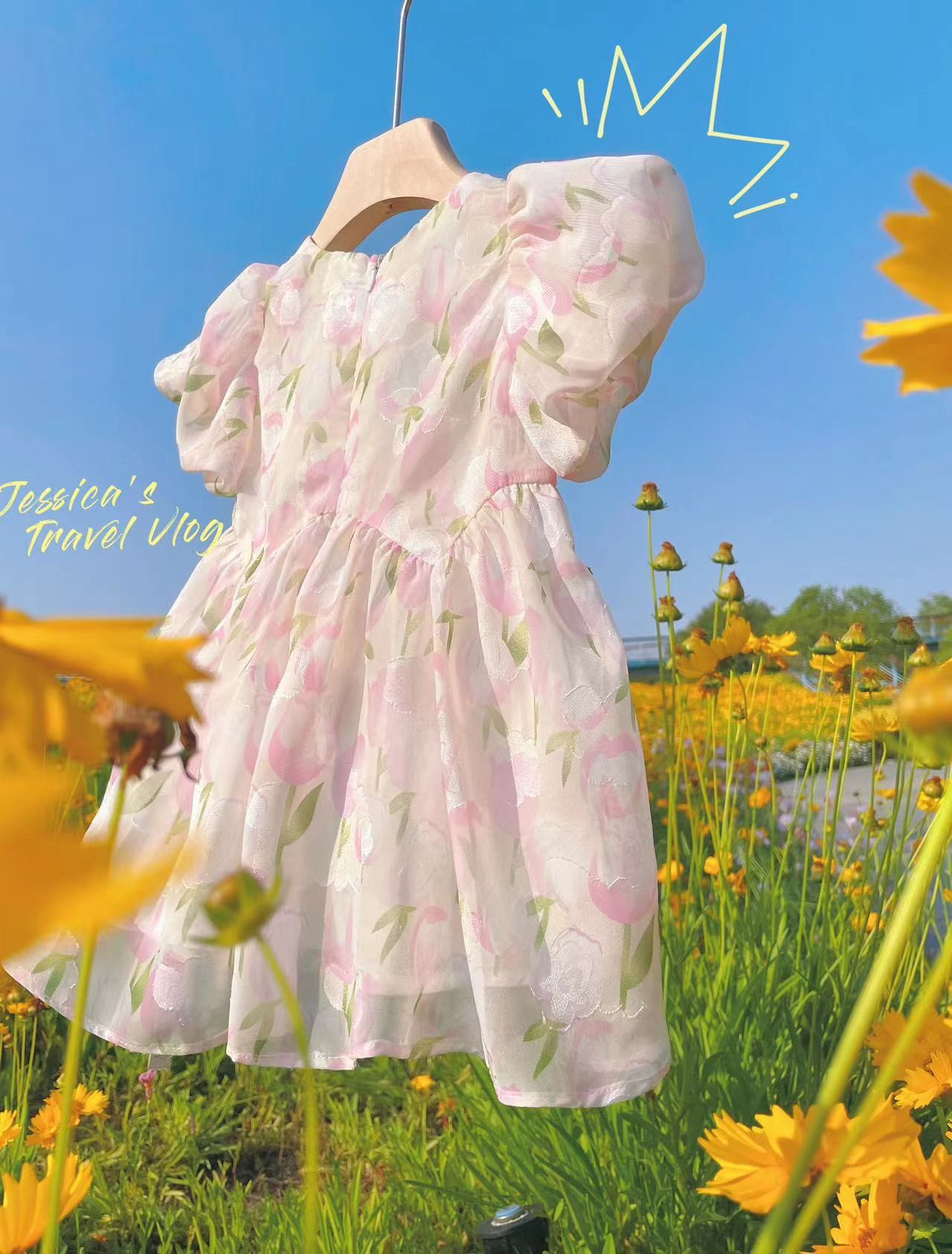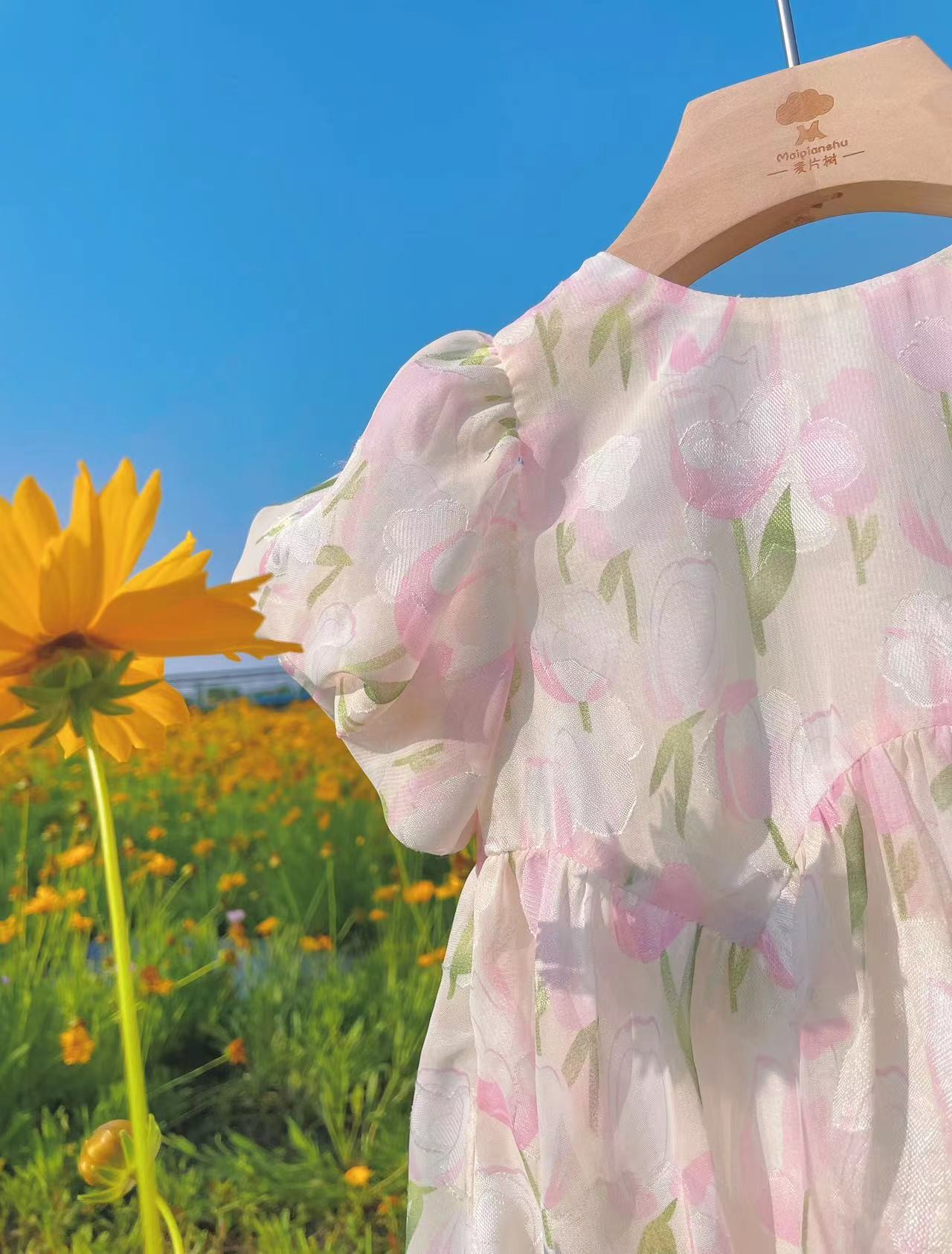 Kaichen 아동복 소녀 어린이 원피스 2024 여름 새로운 어린이 퍼프 소매 원피스 소녀 서양식 달콤한 원피스스토어 가기