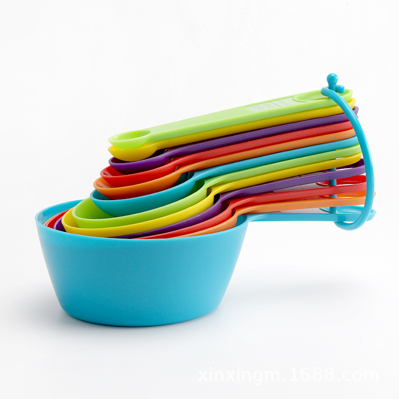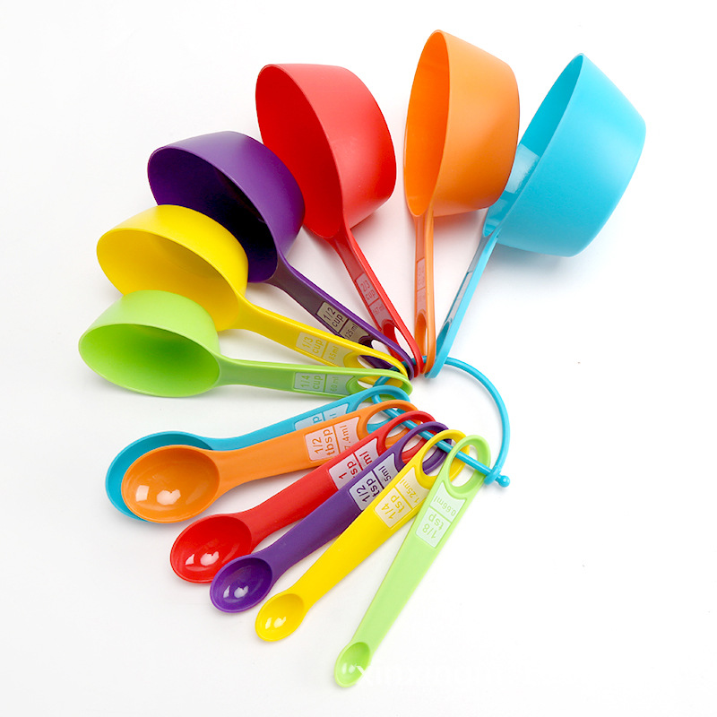 측정 숟가락 측정 숟가락 세트 베이킹 도구 12 조각 세트 컬러 타원형 플라스틱 측정 숟가락 측정 숟가락 인쇄 규모