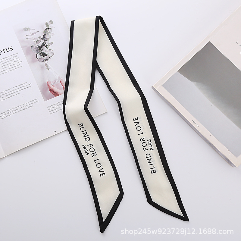 편지 작은 긴 좁은 실크 스카프 헤어 밴드 프랑스 복고풍 스타일 스카프 헤어 타이 리본 봄과 여름 헤어 타이 리본 헤어 액세서리