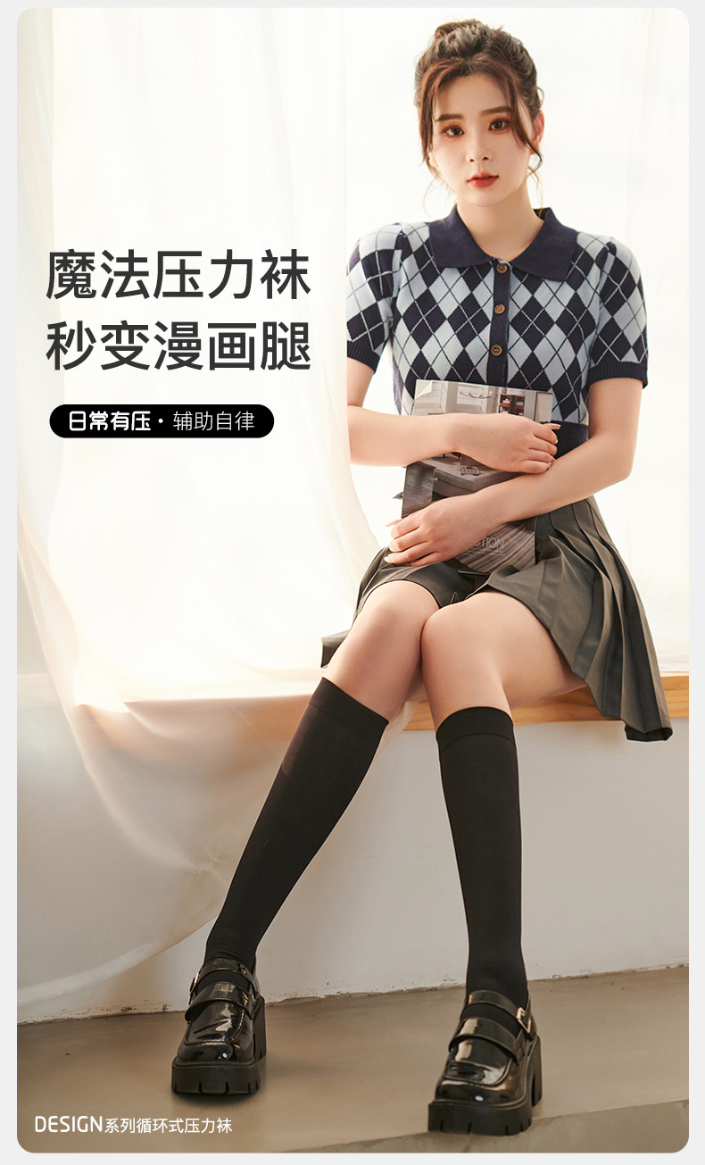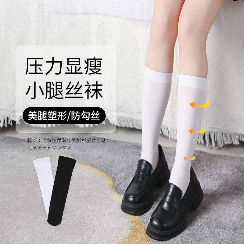 압력 송아지 양말 여성의 강한 압력 스키니 다리 Jk 양말 Ins 유행 스타킹 약간의 압력 블랙 슬림 룩 양말 대학 스타일