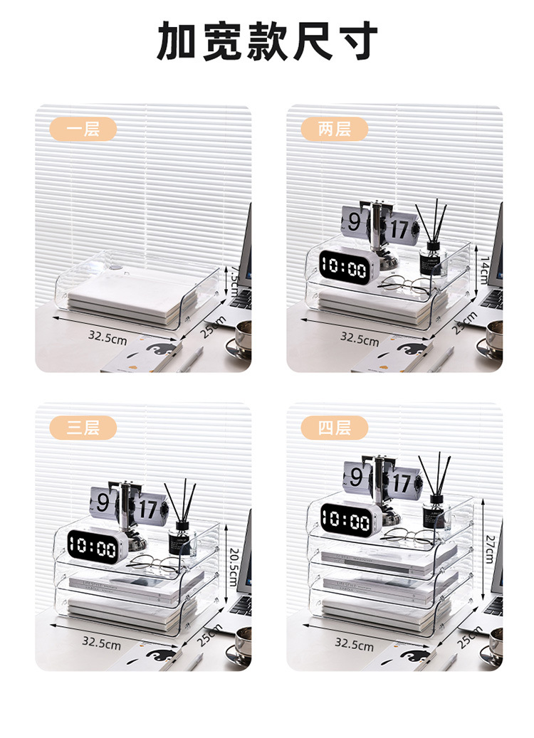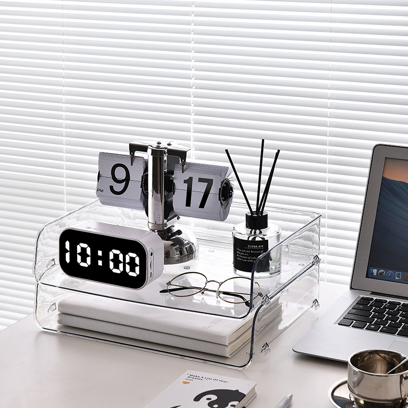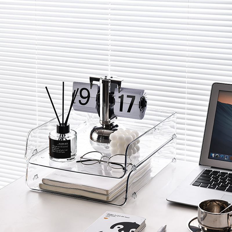 透明亚克力桌面收纳盒 可叠加多层书桌文件整理盒 办公室资料收纳盒 收纳盒 整理盒 收纳系列
