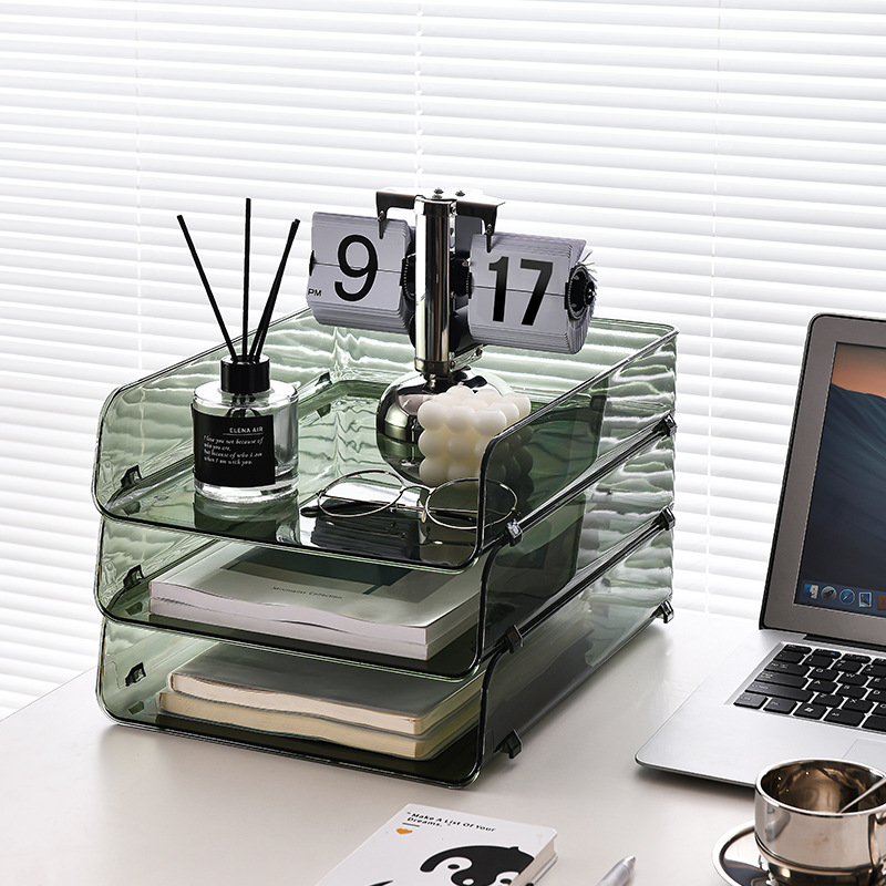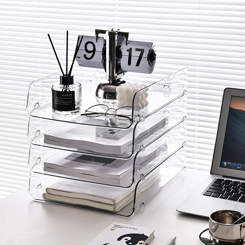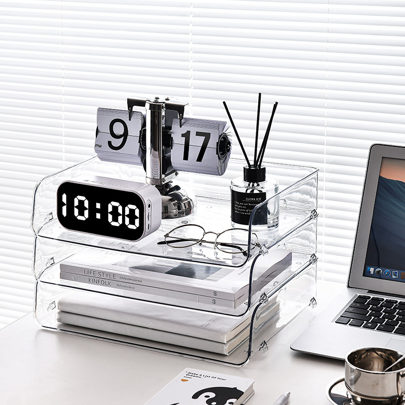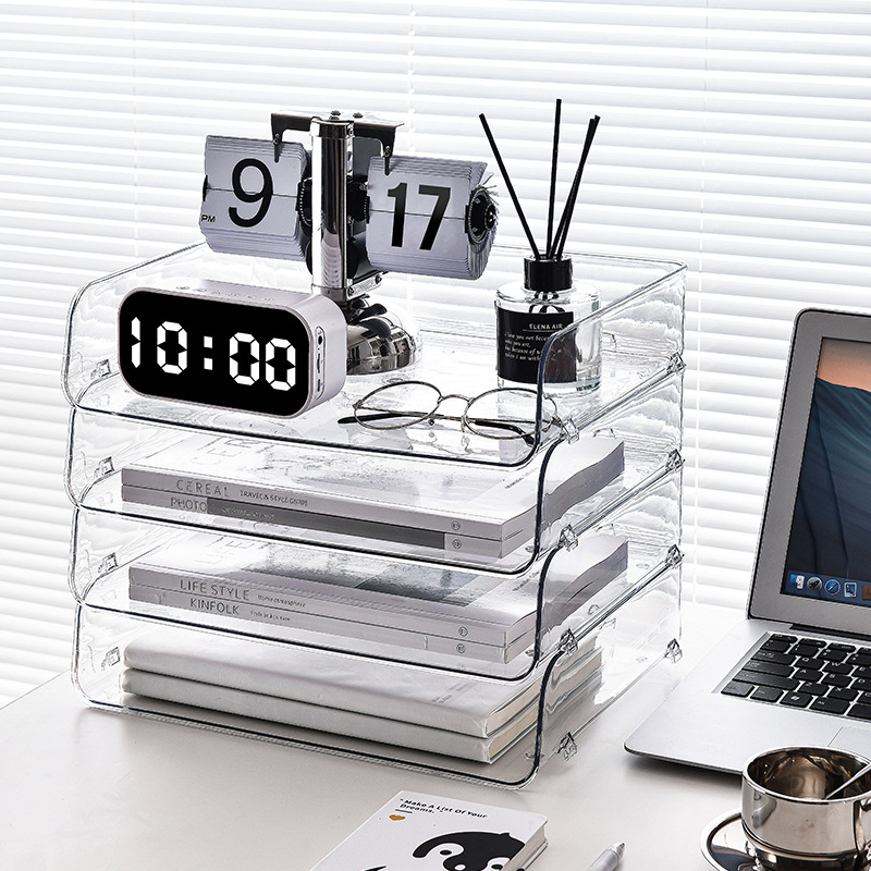 투명 아크릴 데스크탑 보관 상자는 책상 파일 보관 상자 사무실 데이터 보관 상자에 여러 겹으로 쌓을 수 있습니다.