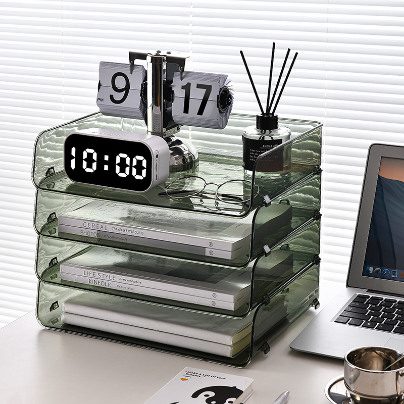 투명 아크릴 데스크탑 보관 상자는 책상 파일 보관 상자 사무실 데이터 보관 상자에 여러 겹으로 쌓을 수 있습니다.스토어 가기