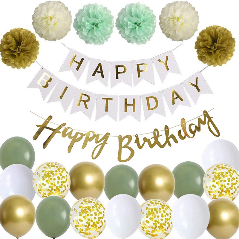 아보카도 그린 풍선 깃발 생일 세트 네이비 실버 생일 깃발 종이 꽃 공 파티 장식스토어 가기