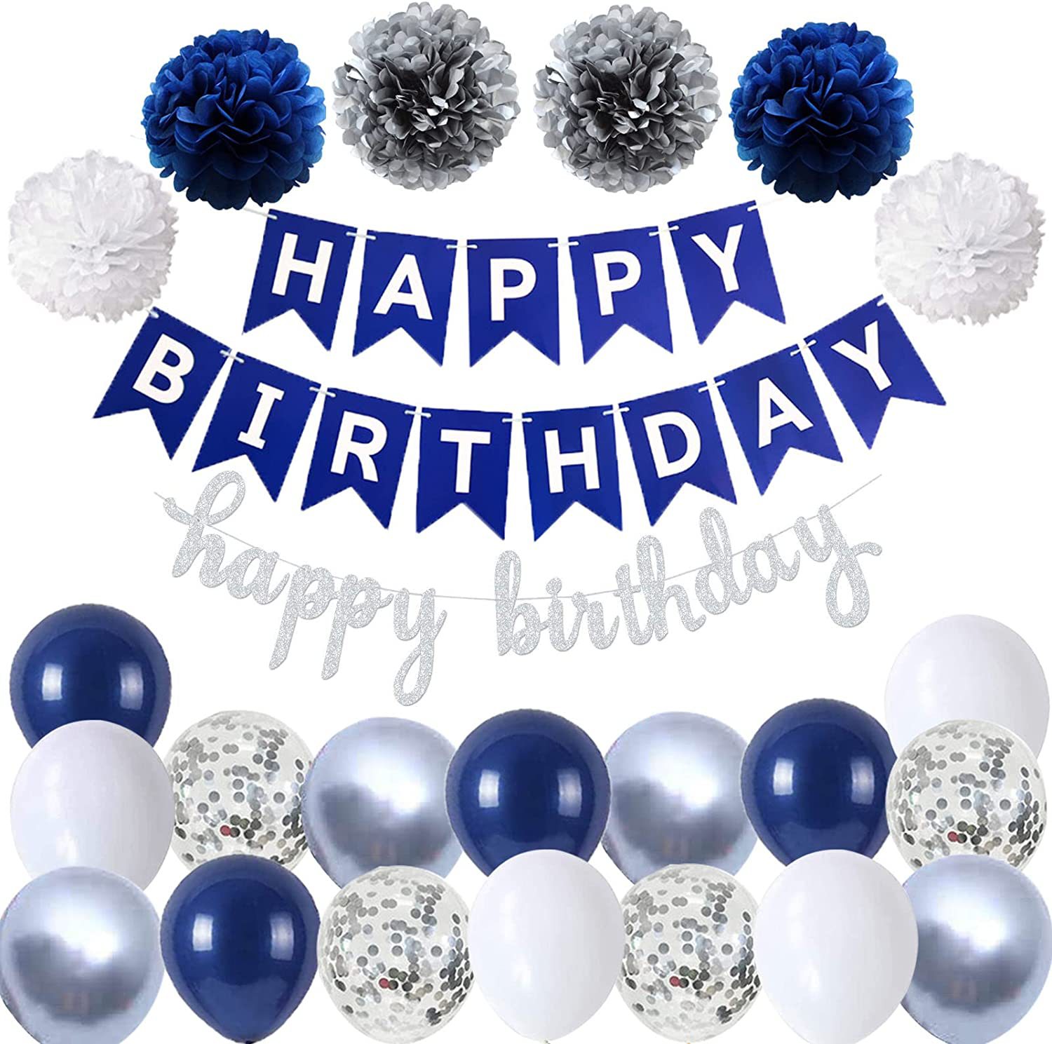 아보카도 그린 풍선 깃발 생일 세트 네이비 실버 생일 깃발 종이 꽃 공 파티 장식