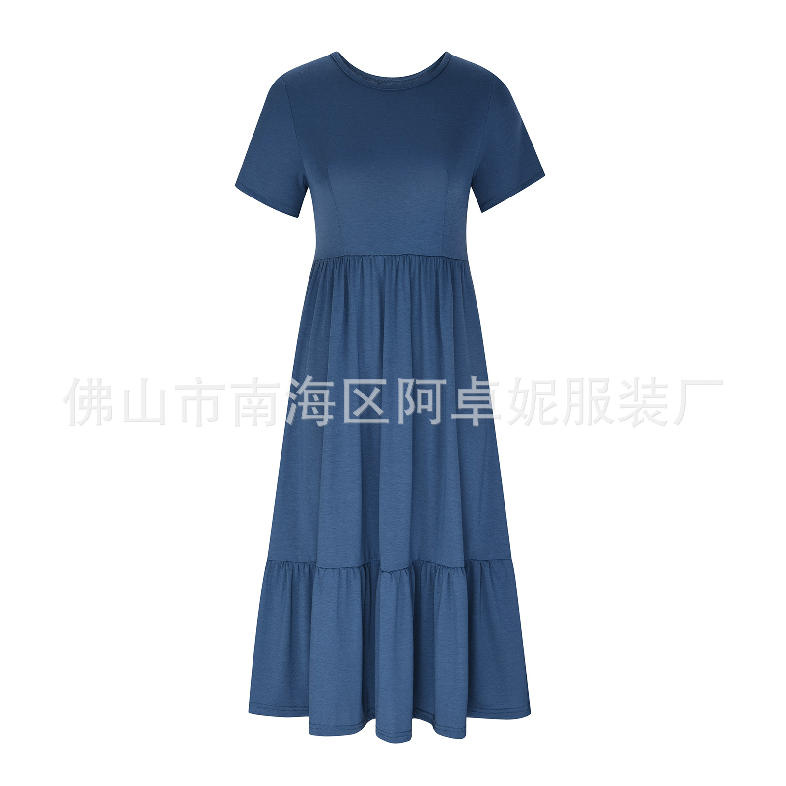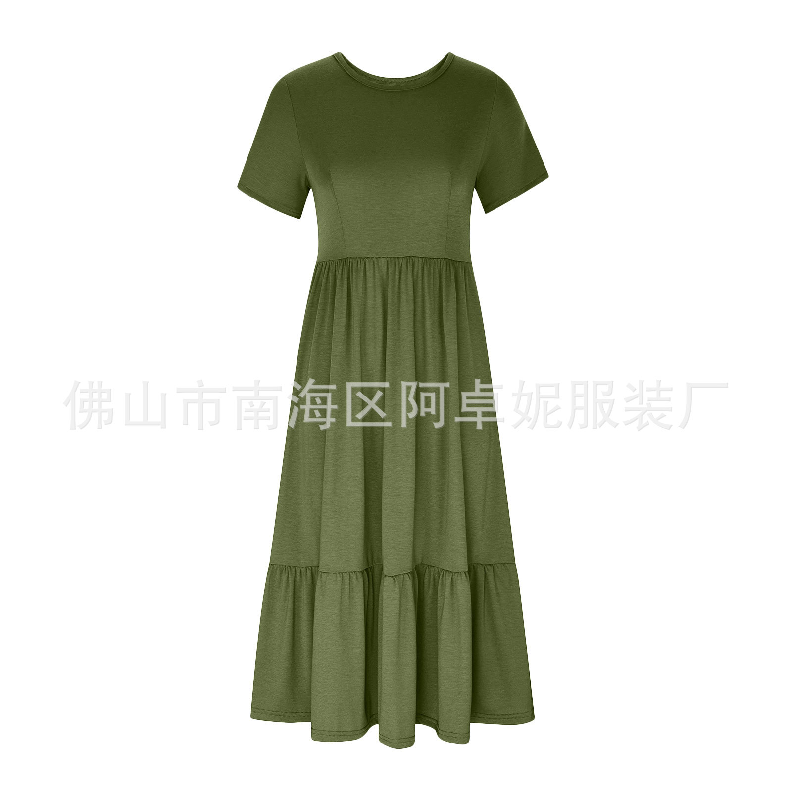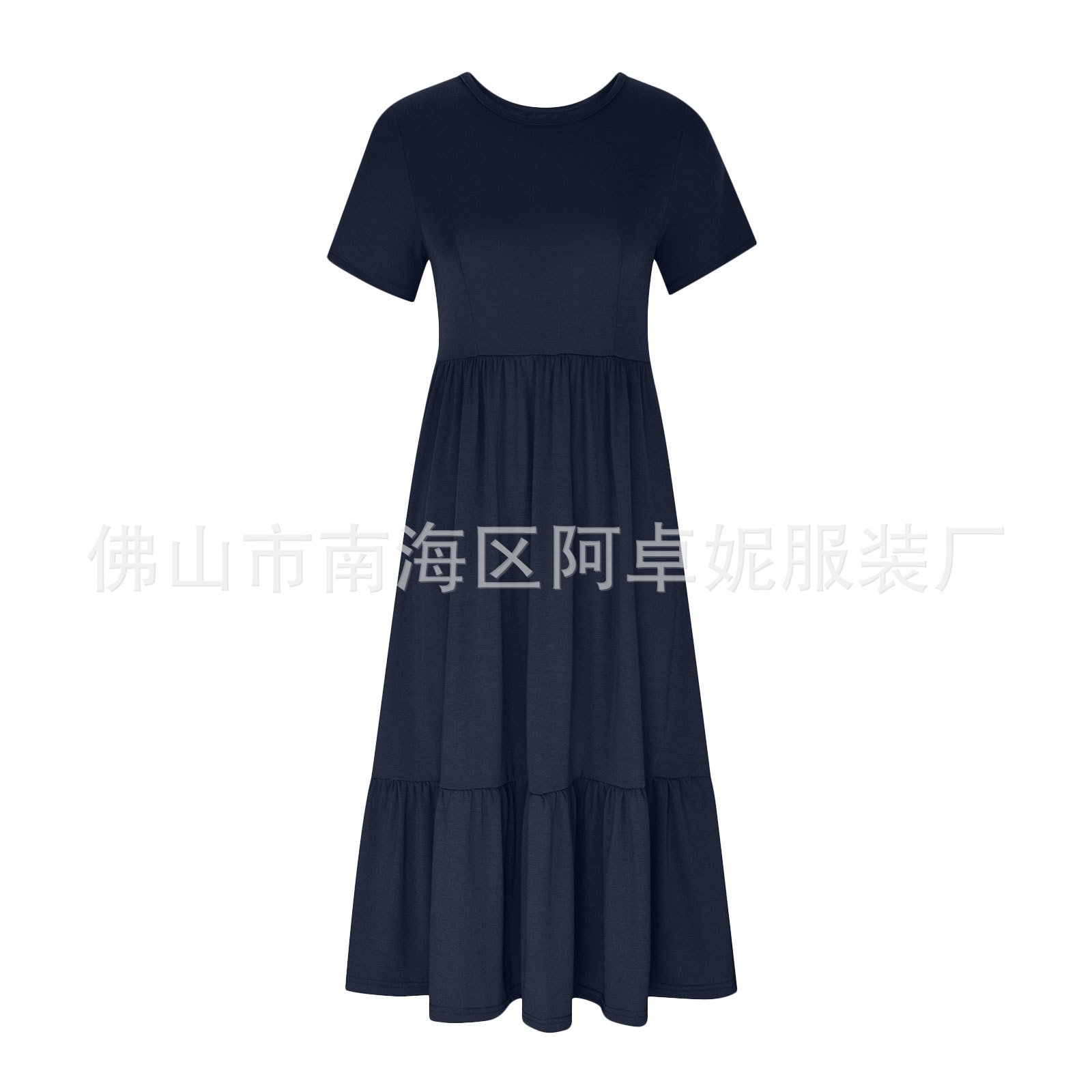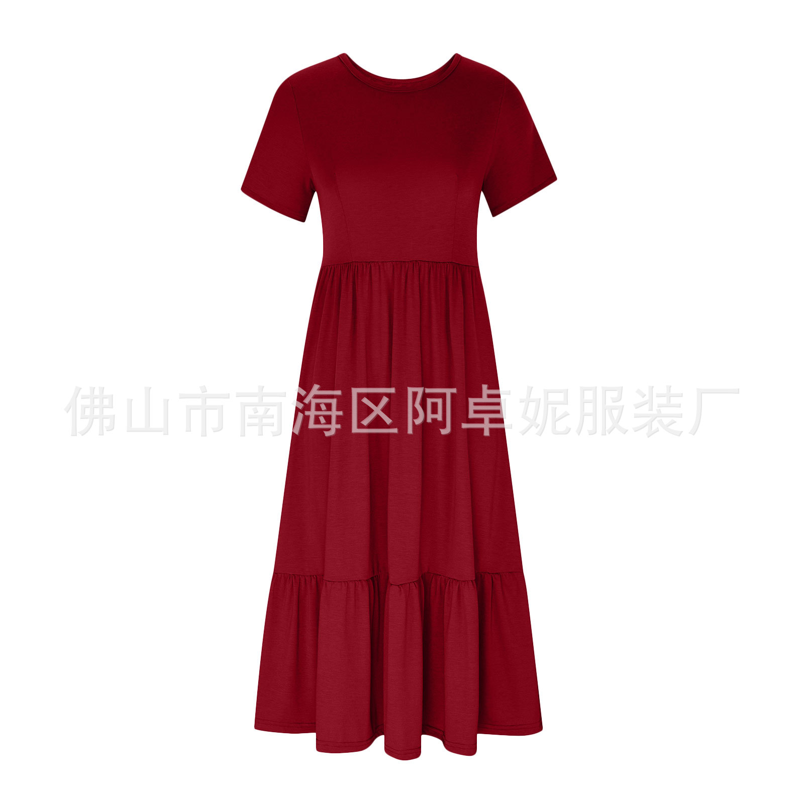 Spot 2025 새로운 여성 의류 아마존 국경 핫 스타일 라운드 넥 스목 솔리드 컬러 스윙 드레스