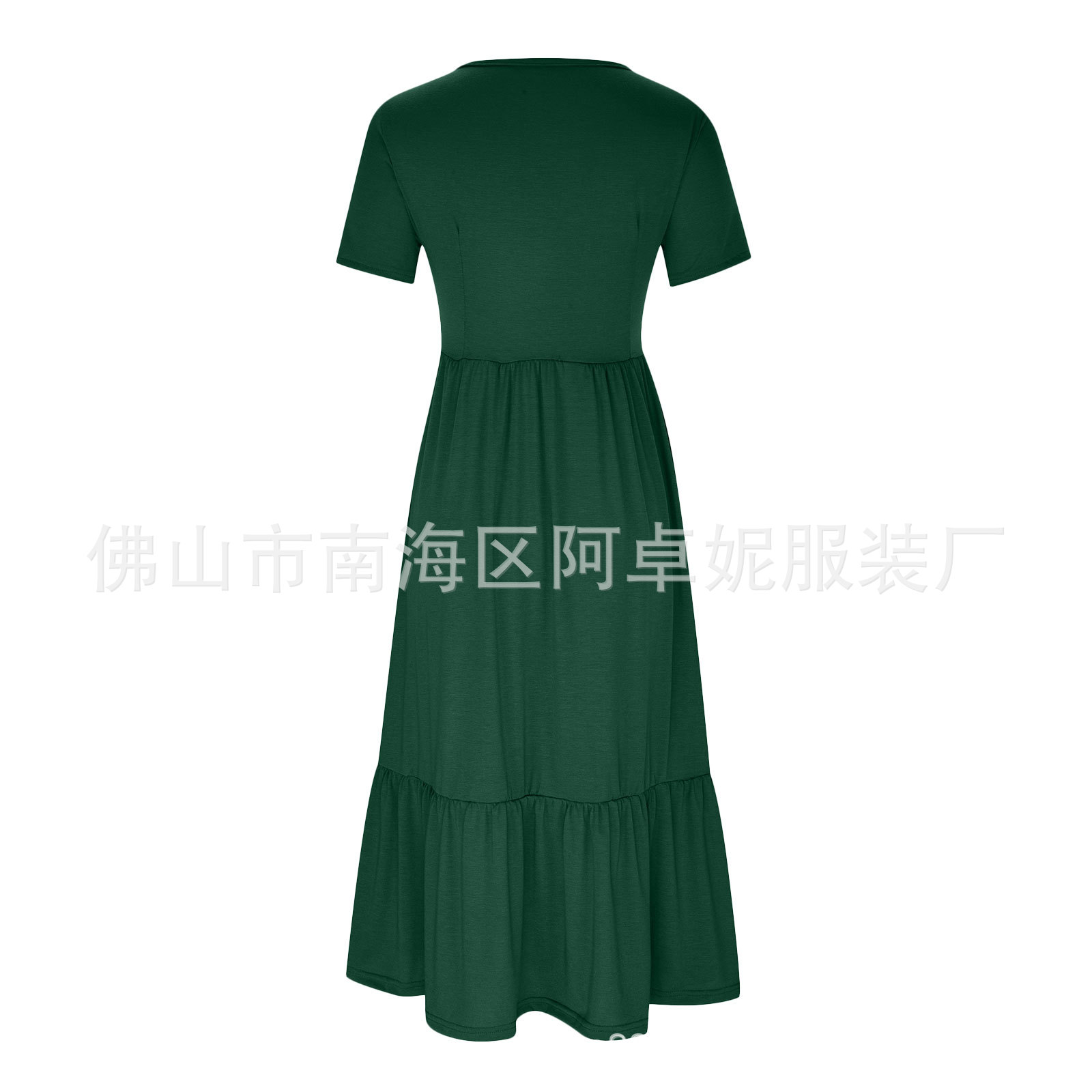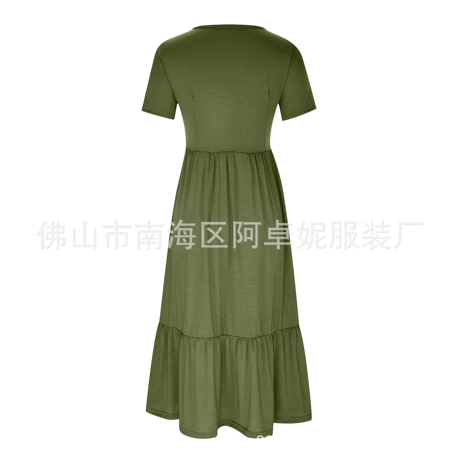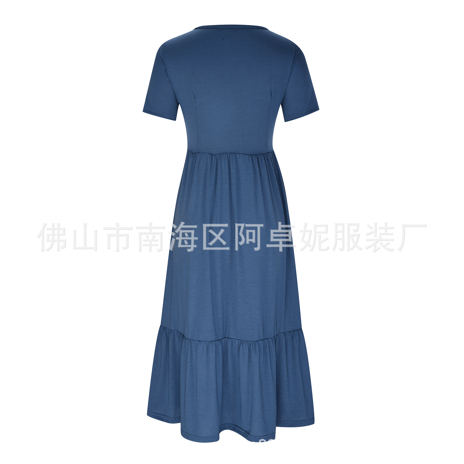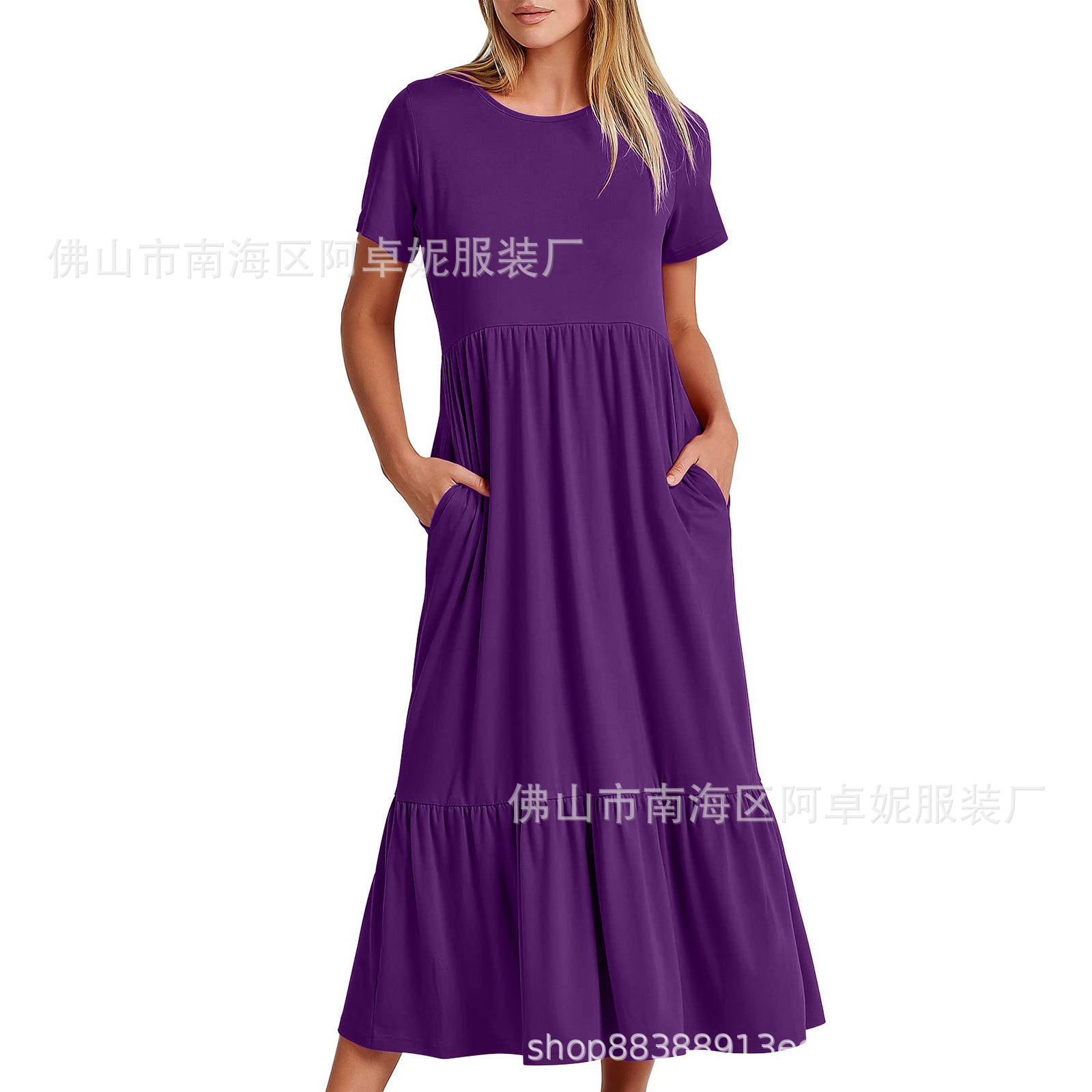 Spot 2025 새로운 여성 의류 아마존 국경 핫 스타일 라운드 넥 스목 솔리드 컬러 스윙 드레스