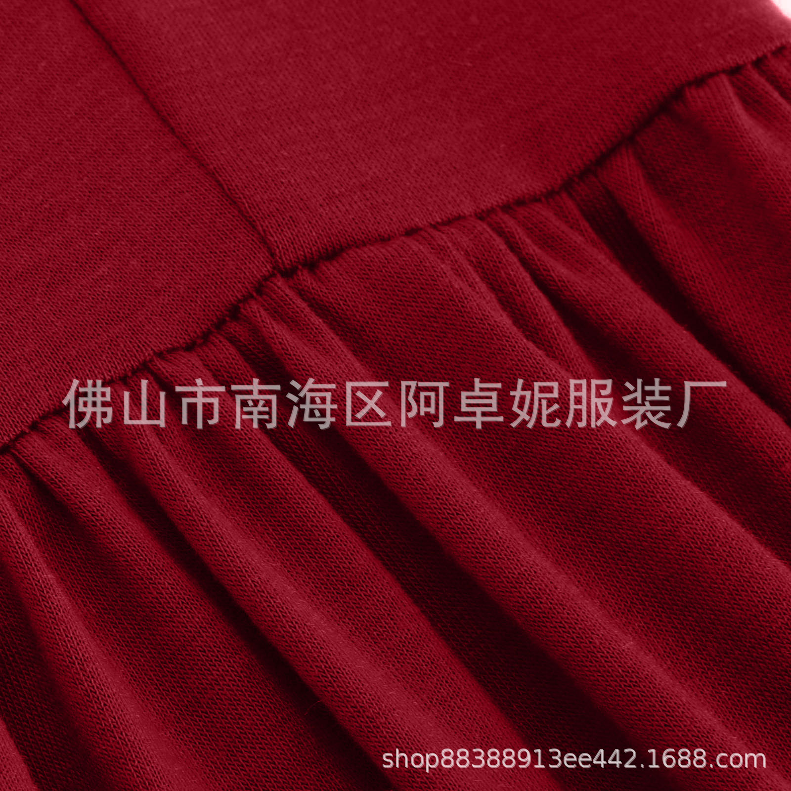Spot 2025 새로운 여성 의류 아마존 국경 핫 스타일 라운드 넥 스목 솔리드 컬러 스윙 드레스스토어 가기