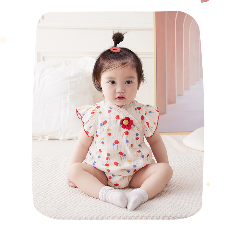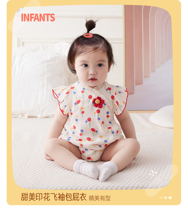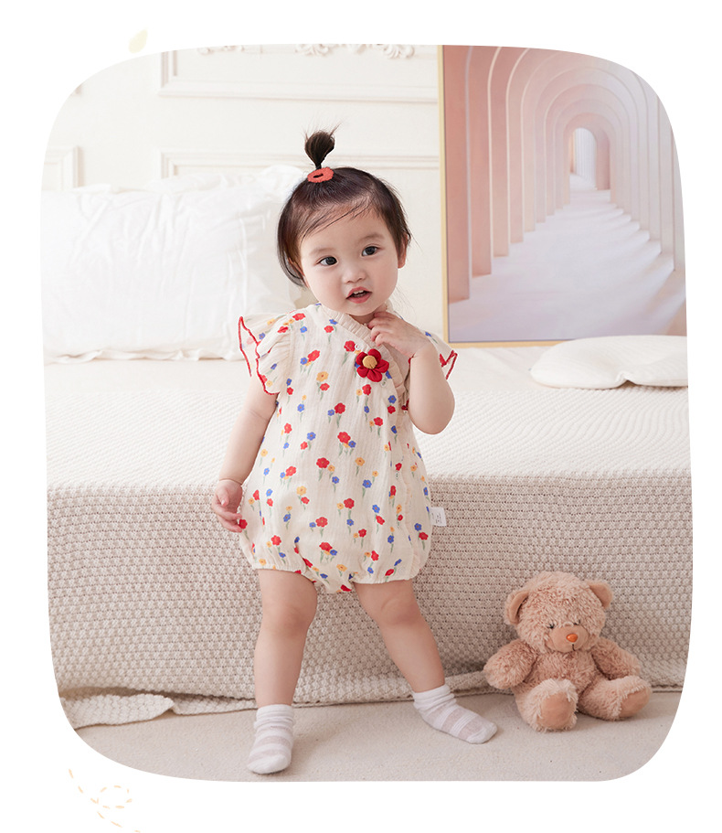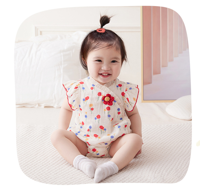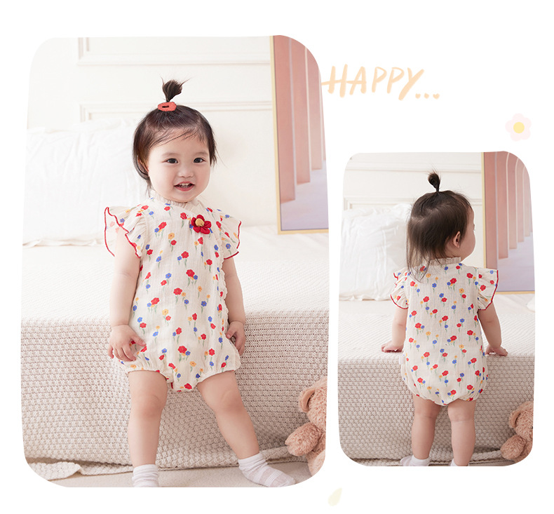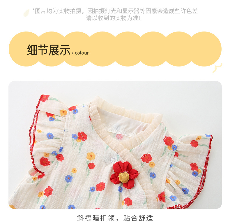 아이디어 소녀 2023 여름 신생아 아기 얇은 면 점프 슈트 아기 민소매 삼각형 가방 방귀 3106스토어 가기