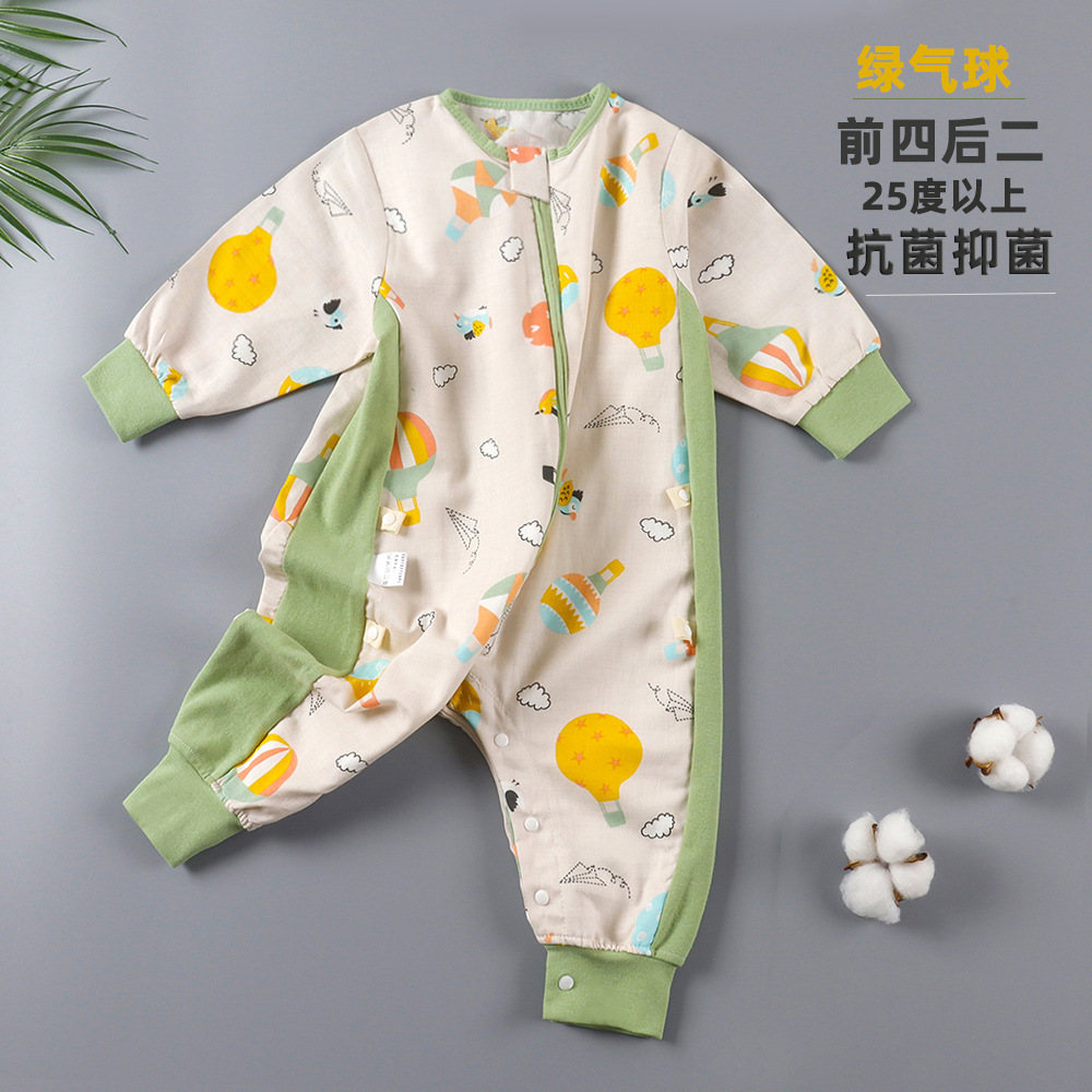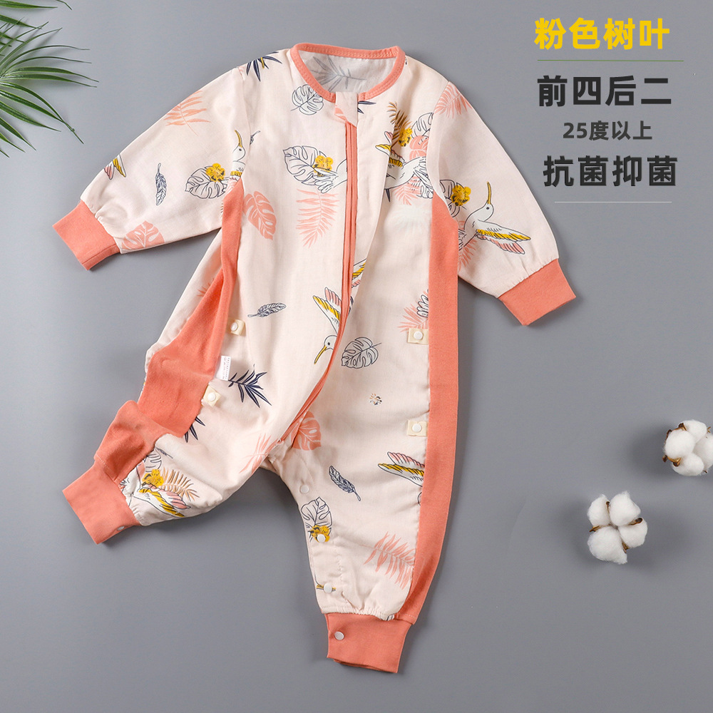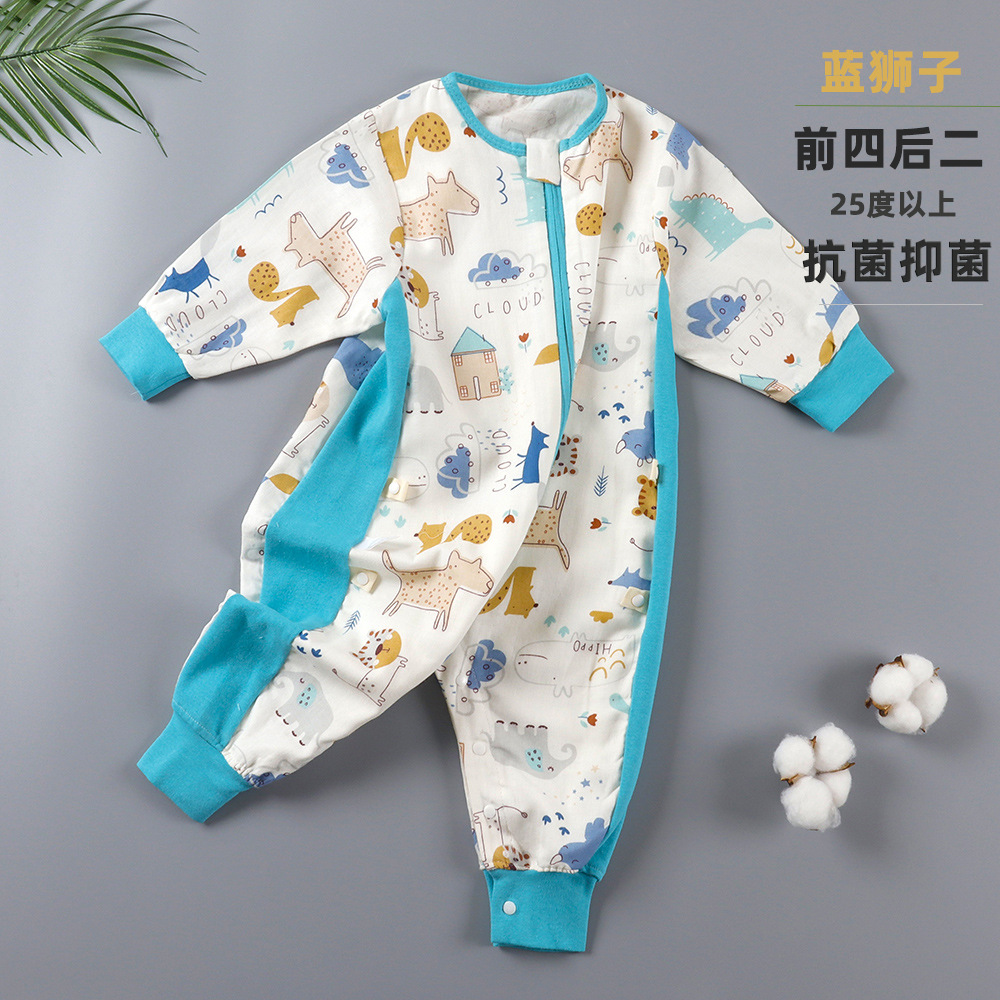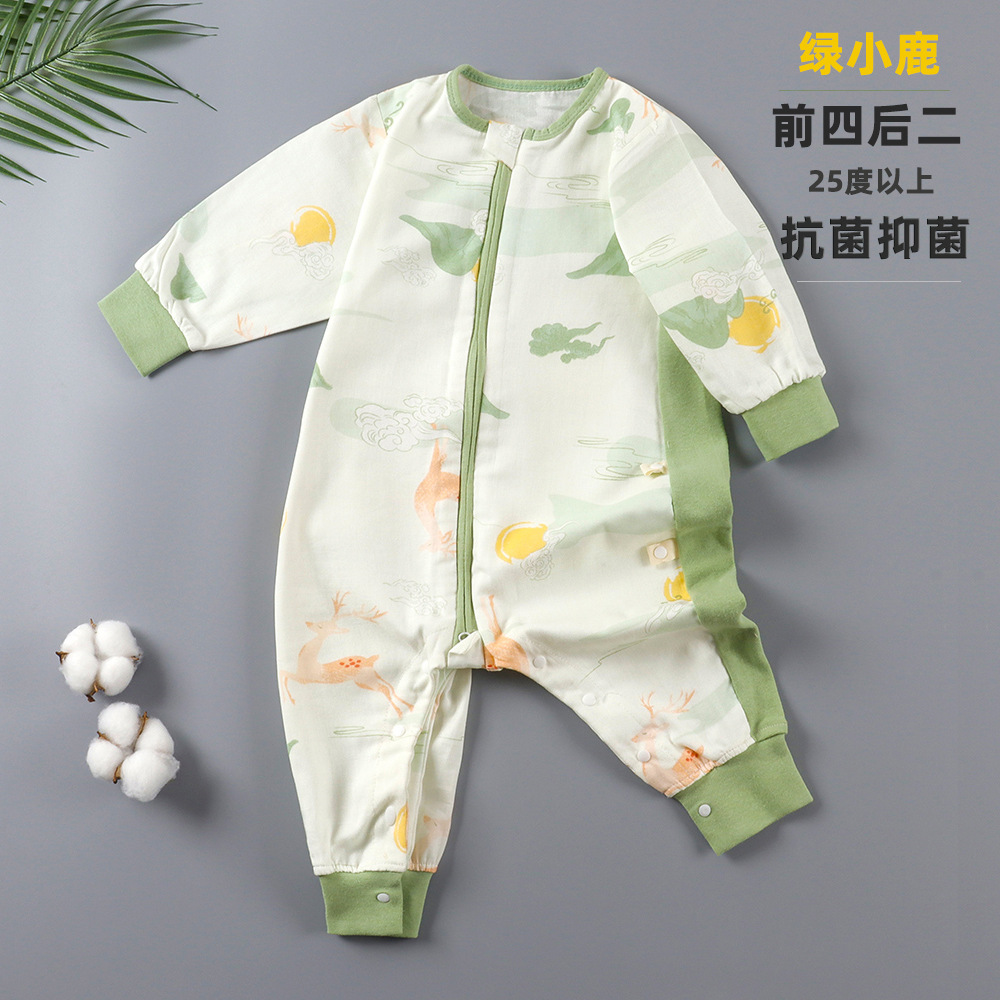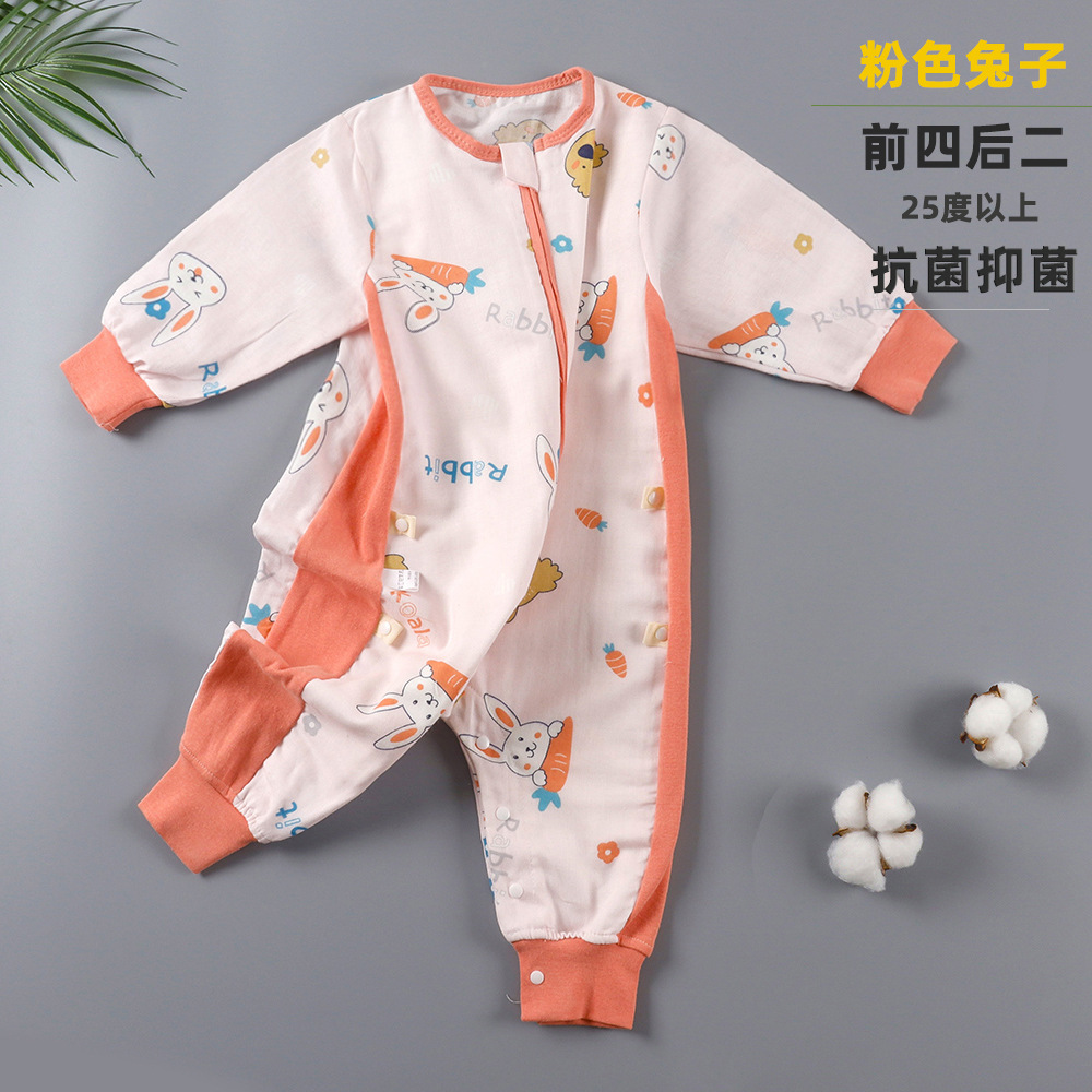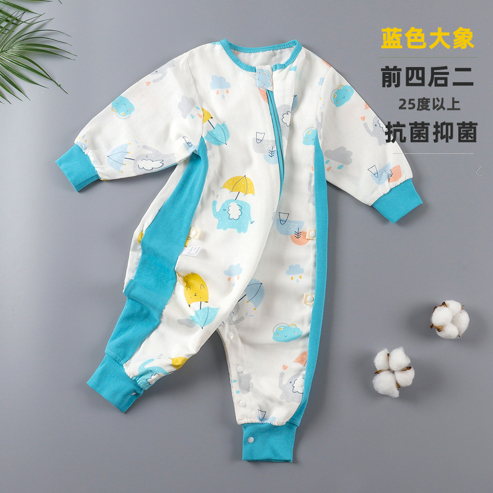 婴儿睡袋儿童分腿纱布睡袋春秋夏季薄款抗菌宝宝连体睡衣四季通用
