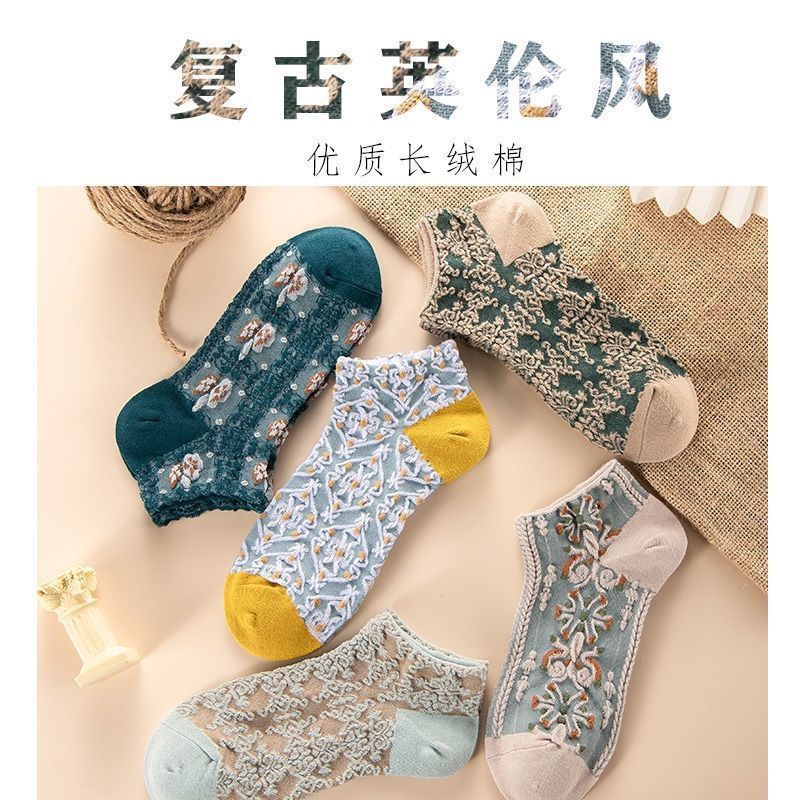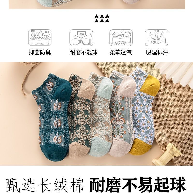 입체 구호 빈티지 내셔널 조수 로우 탑 보트 양말 자수 아트 팰리스 항만 민속 양말 여성용 양말