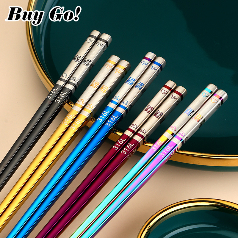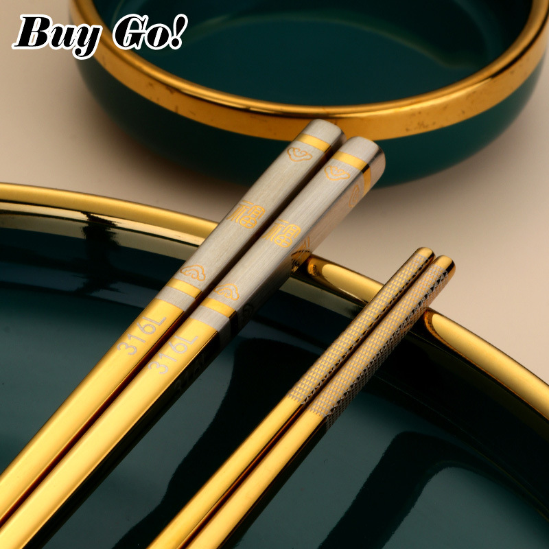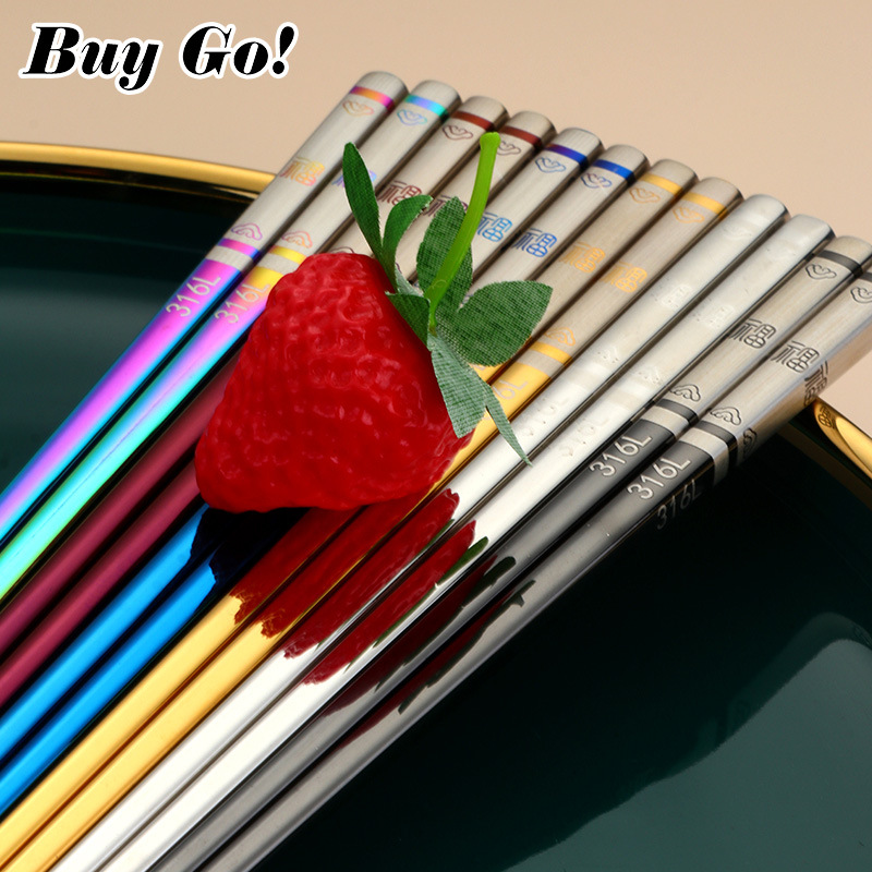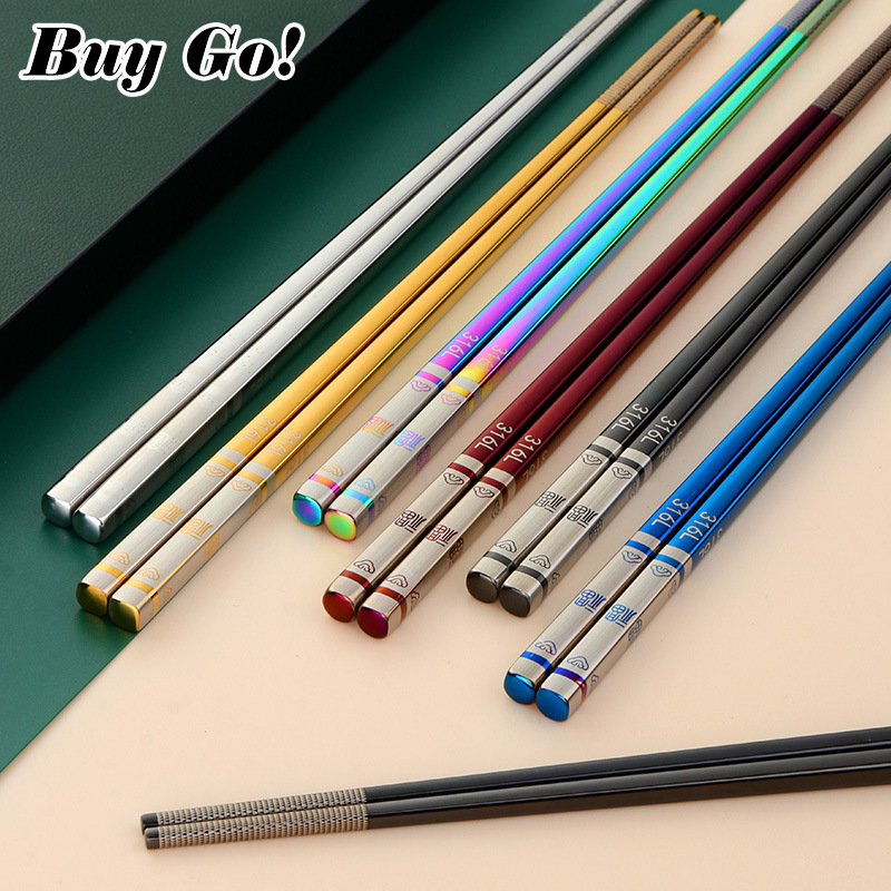 316 스테인레스 스틸 중공 미끄럼 방지 중공 사각 젓가락 가정용 호텔 레스토랑 공공 젓가락 식기 젓가락스토어 가기