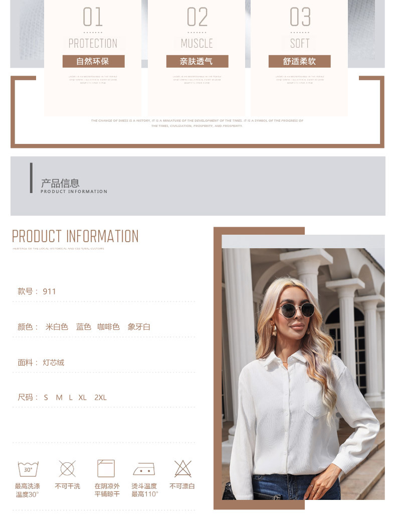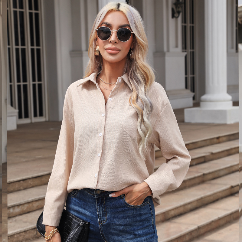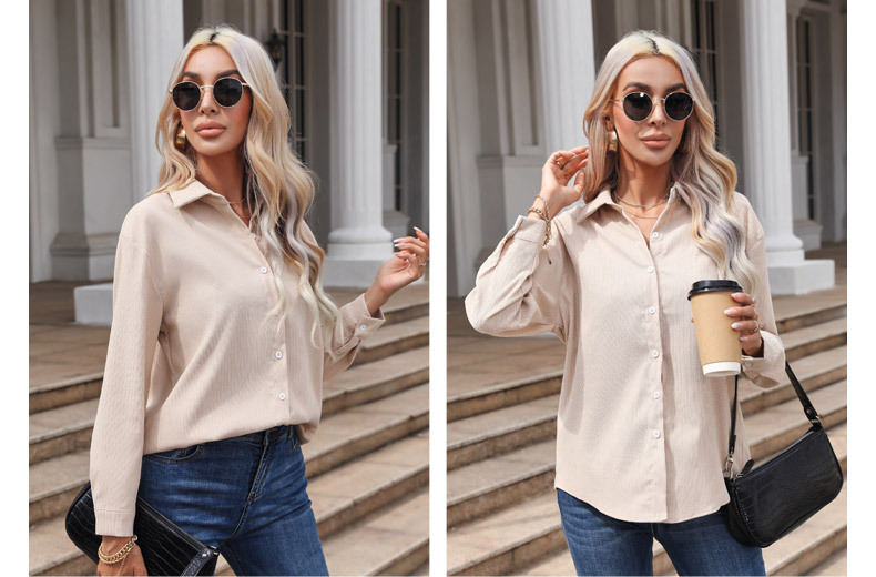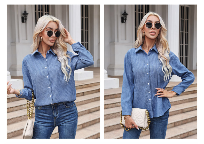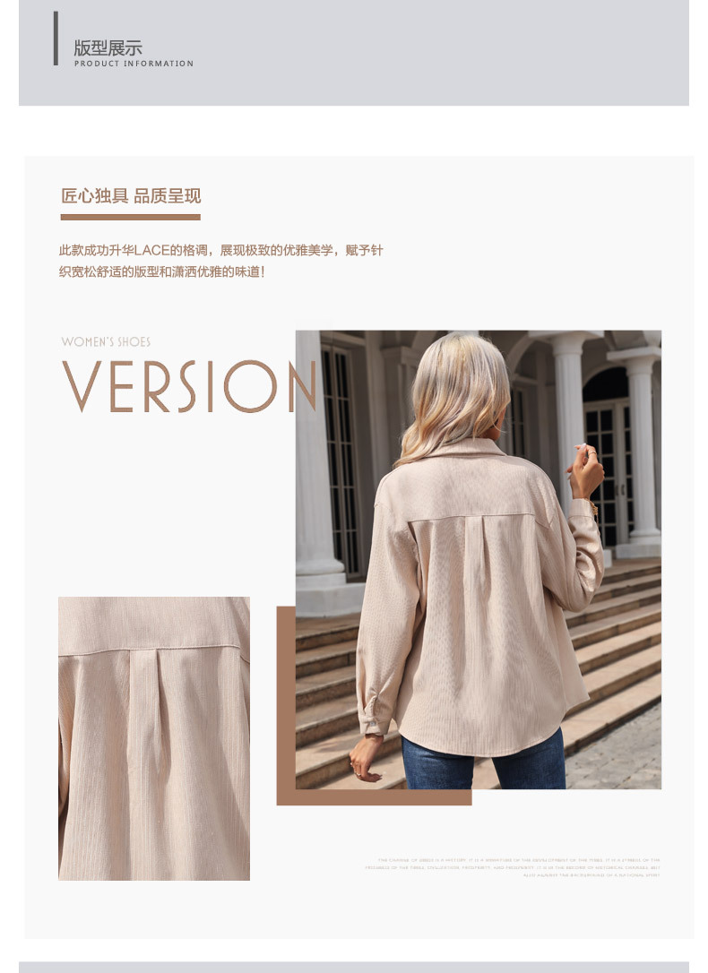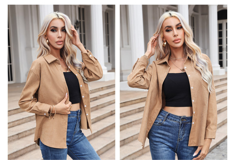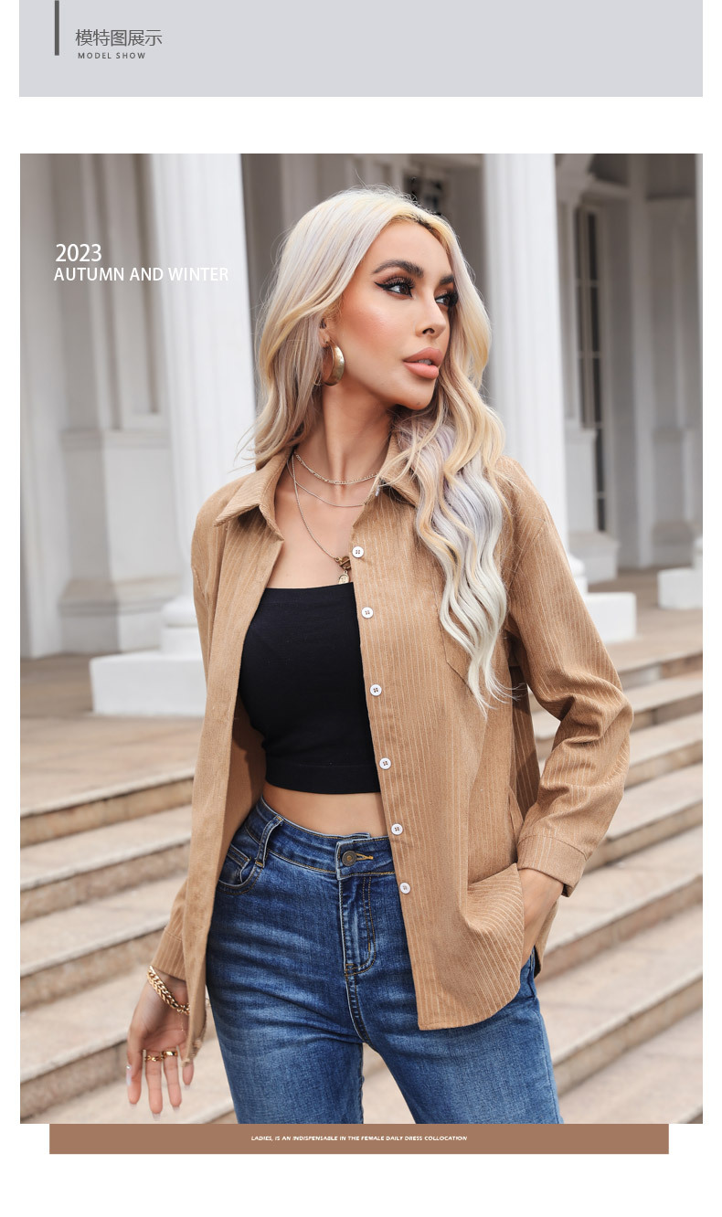 국경 간 유럽 및 미국 대외 무역 여성 의류 아마존 2023 봄과 가을 새로운 코듀로이 캐주얼 느슨한 긴 소매 셔츠 탑스토어 가기